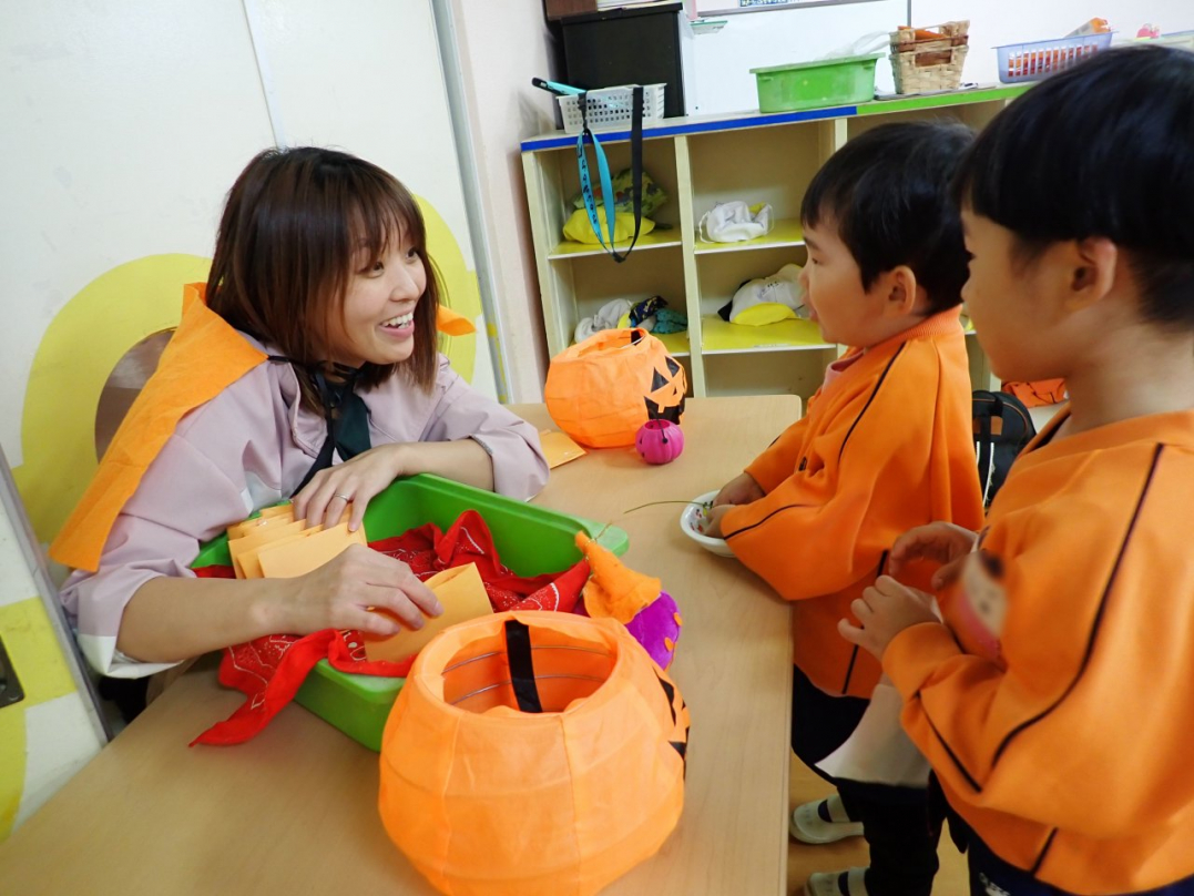 幼稚園では色々と工夫をこらしてハロウィン遊びを楽しんでいます。