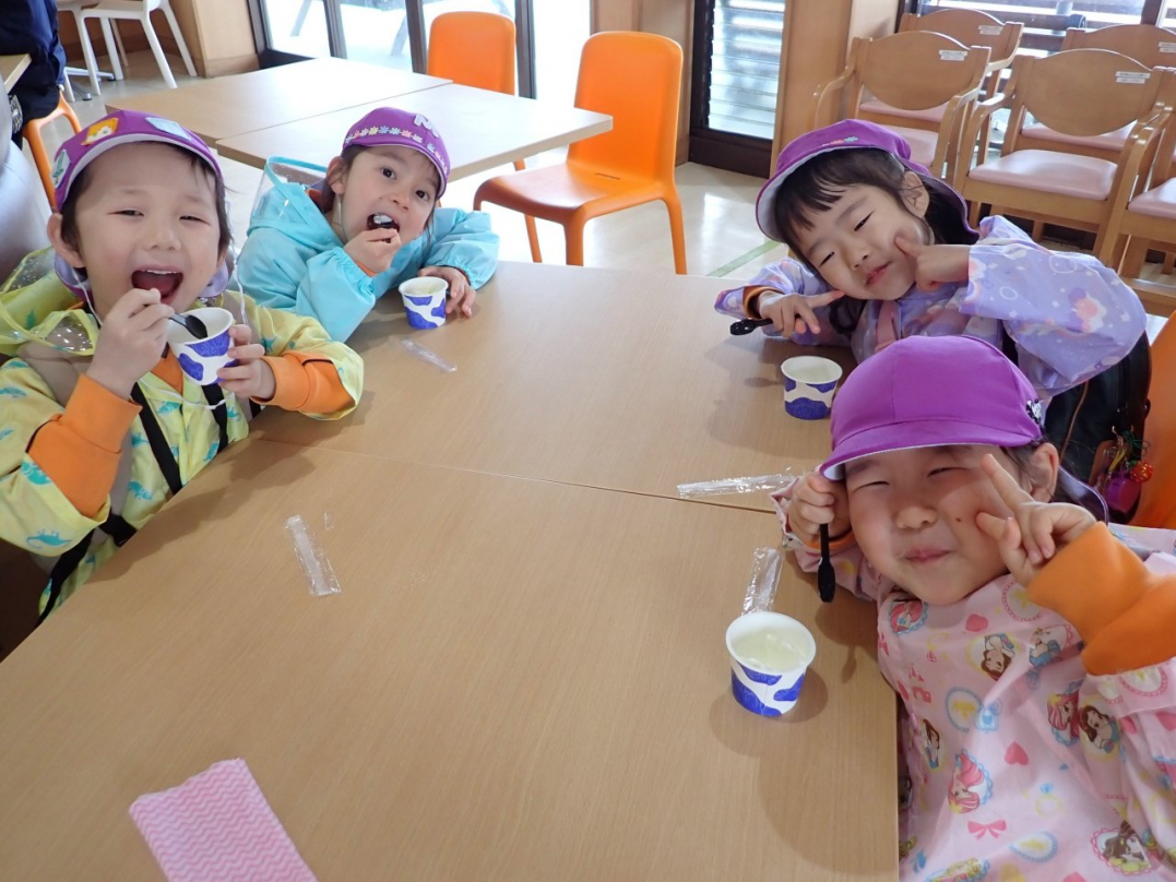 今日はあいにくの天気でしたが、きれいな菜の花の咲く牧場を歩くのも楽しい!美味しいごはんを食べたり、ヒツジのショーを楽しんだり、牛の乳しぼりをしたりと、とっても楽しかったですね♪
