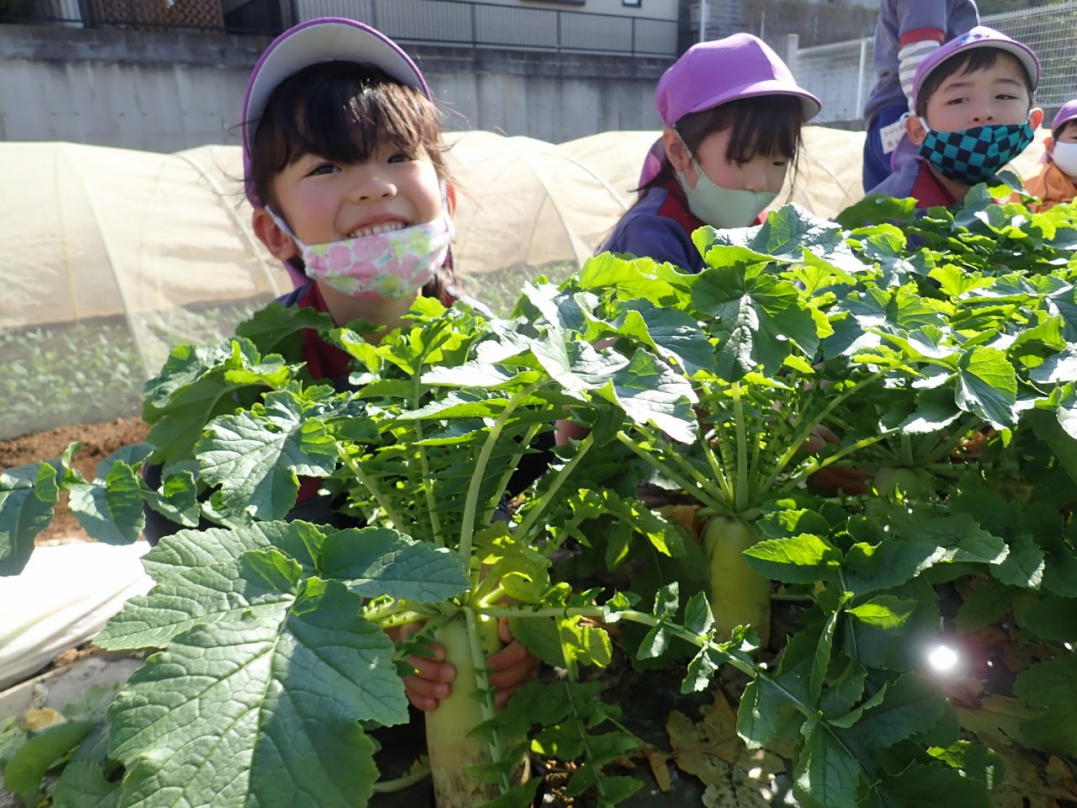 でも「大根をくるくる回して引っ張るといいよ」「真っすぐ引っ張るんだよ」と友だち同士で教え合うと、上手に抜けるようになりました。