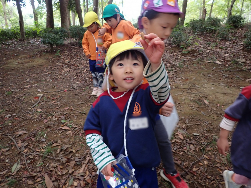 秋の自然遊びでドングリ集めに行きました(年中組)