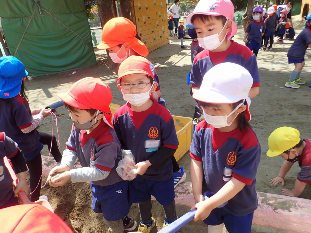 1つお兄さん、お姉さんになった「つばめ組」「ひばり組」の子ども達は、園庭のあちらこちらでそれぞれ好きな遊びを楽しんでいます。友だちと一緒に遊んだ「だるまさんが転んだ」や「ドロケイ」も面白かったですね!
