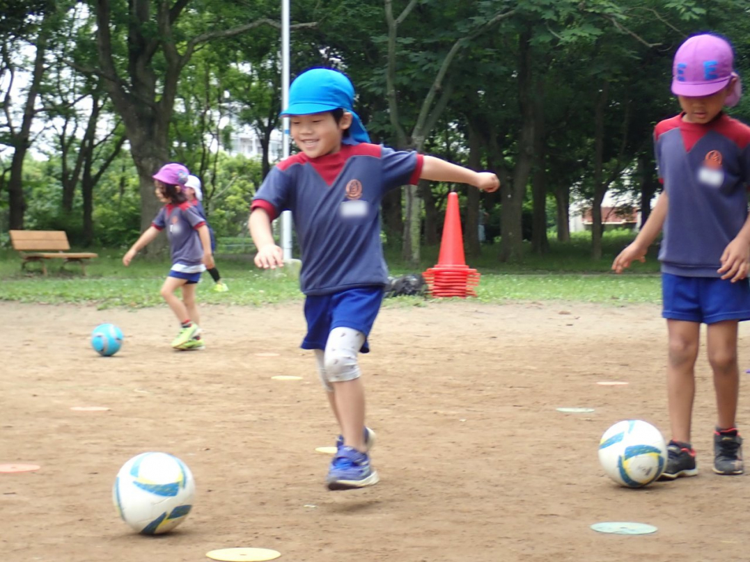 今回は涼しい行田公園の木陰で、みんなでサッカーを楽しみました。ボールに慣れていなかった子も回を重ねるにつれ、だんだん上手になってきましたね。