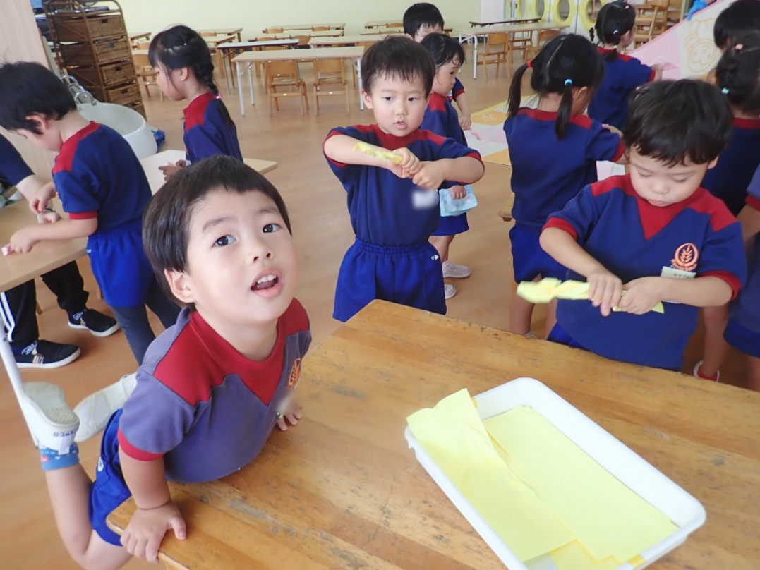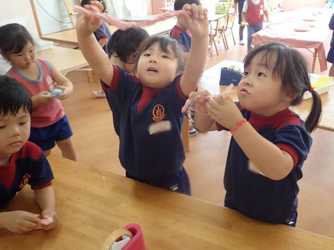 カナリヤ組は「ハッピージャムジャム」の曲に合わせて、可愛らしく元気いっぱいに踊ります。カラフルな紙に色を塗って、みんなで美味しそうなドーナツも作りました。走る姿もカッコ良く、手足を振って速く走れるようになりましたね。ぜひご家庭の皆さまも応援しに来て下さいね。