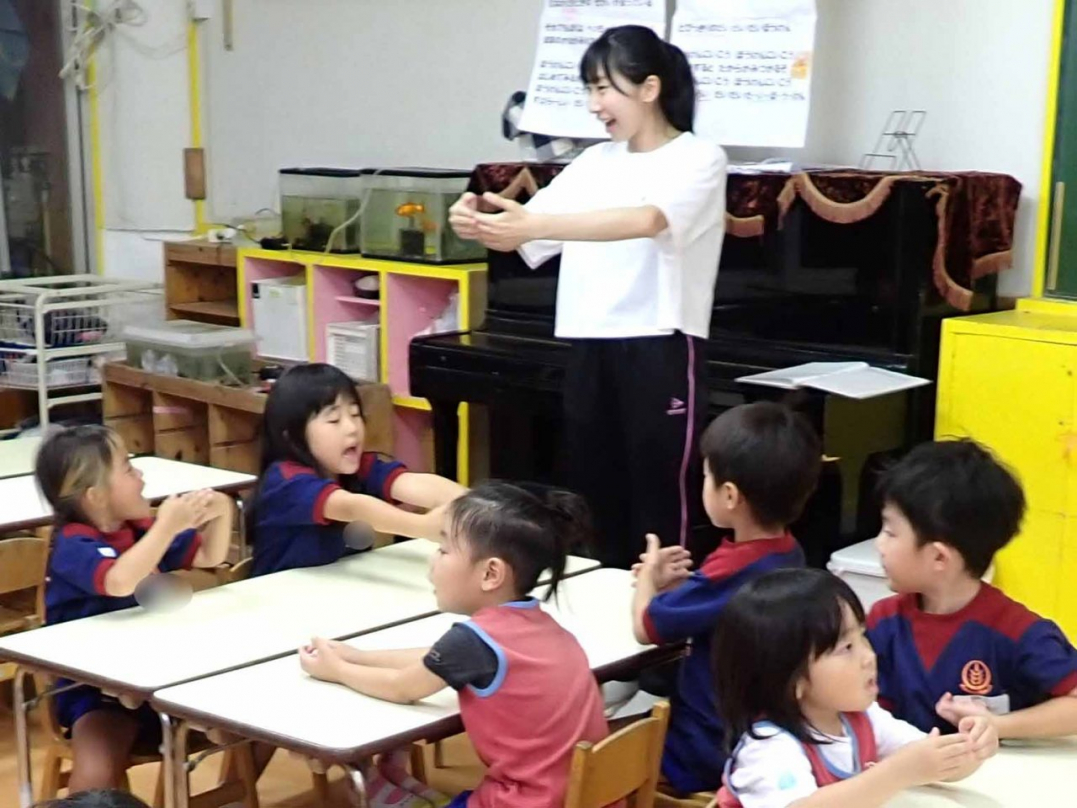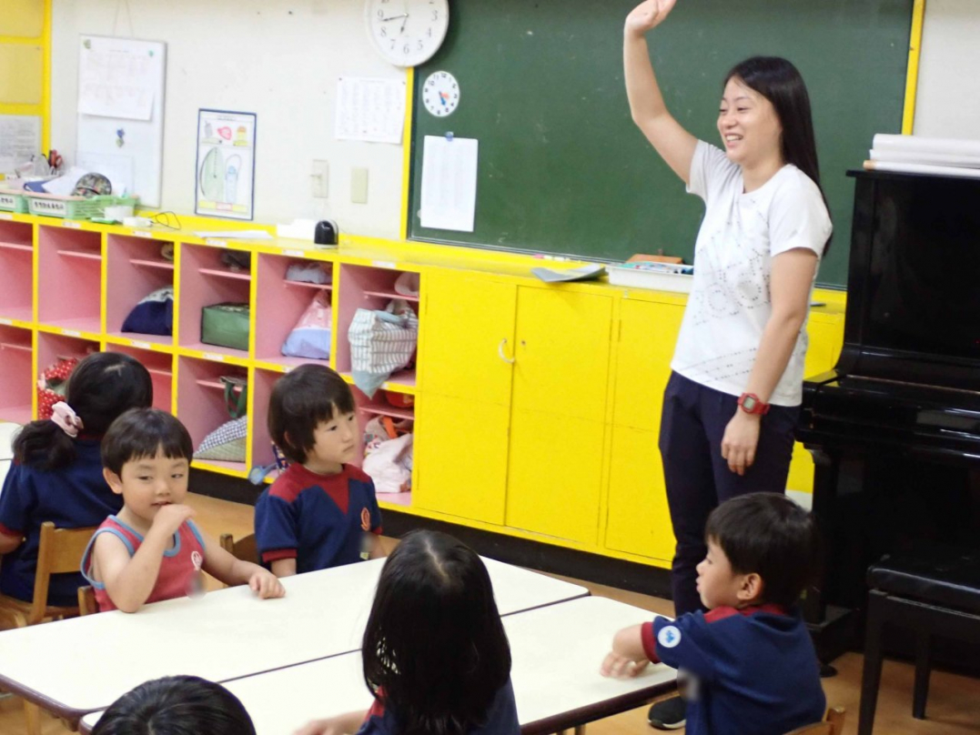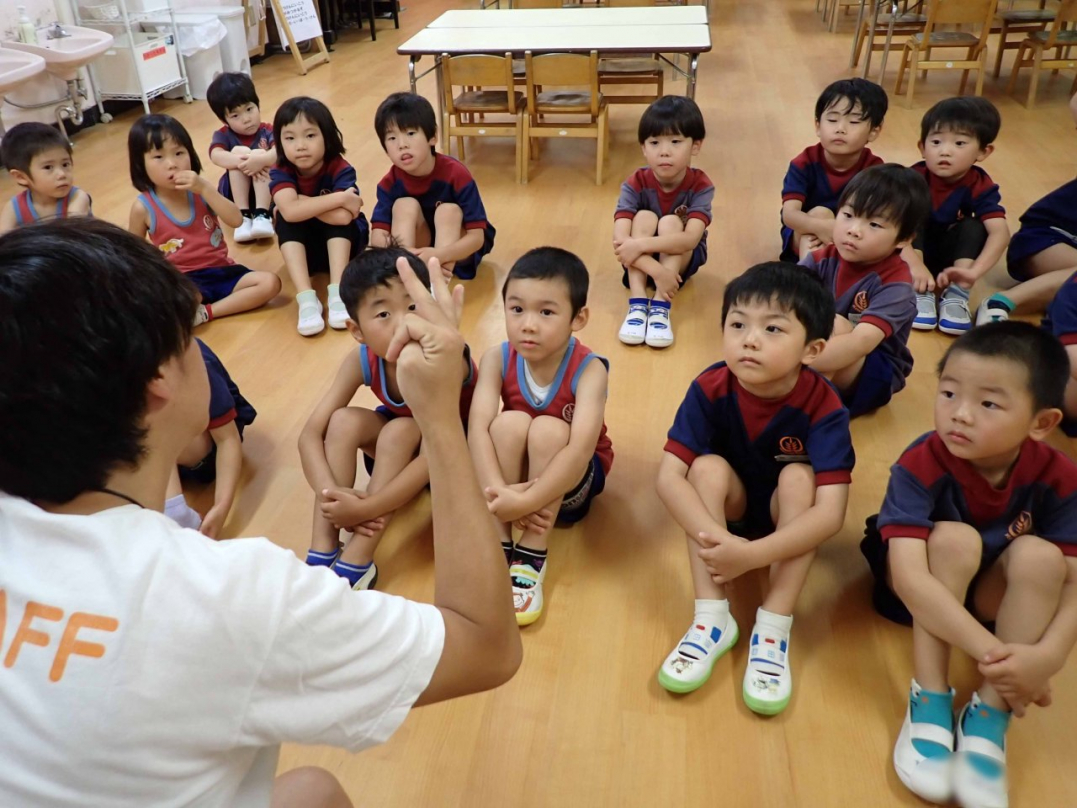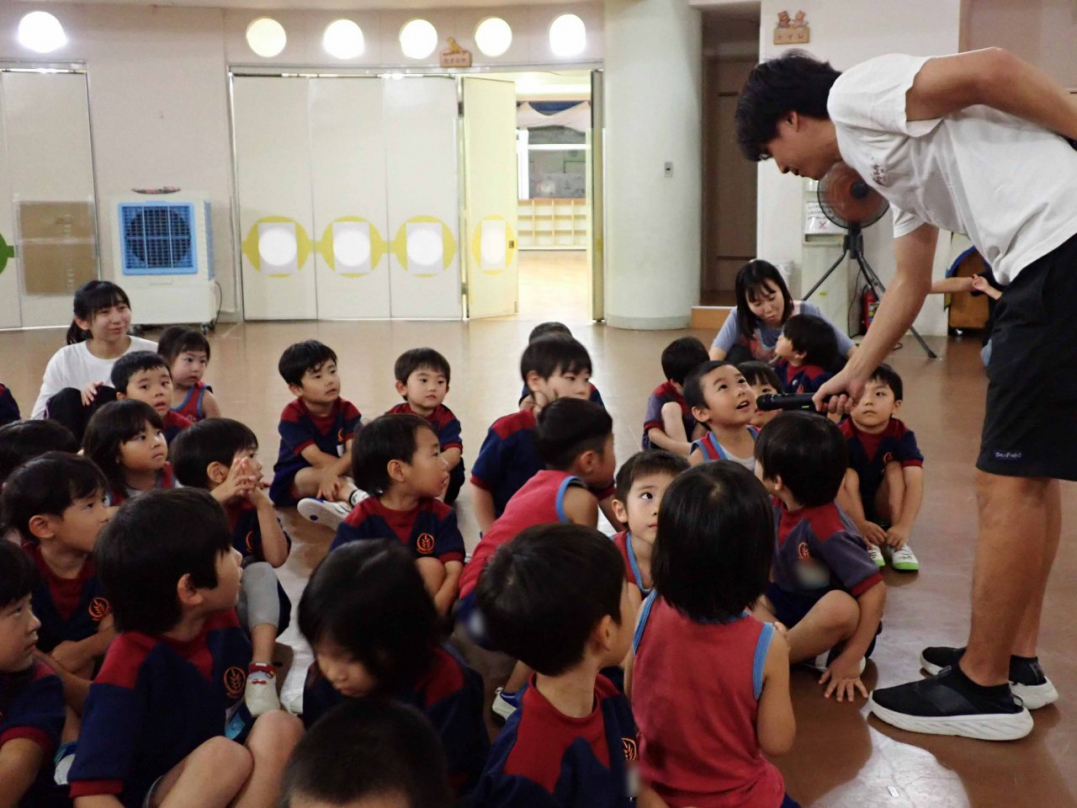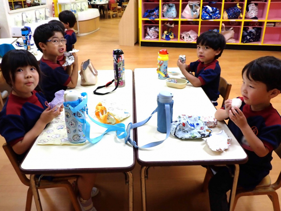 今日はつばめ組のお泊り保育です。夏休み、つばめ組では友達や教師と一緒に、幼稚園で一晩過ごします。