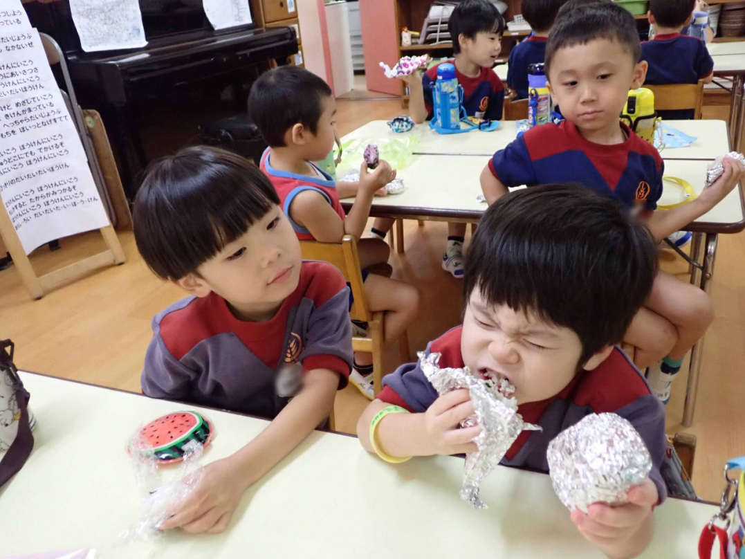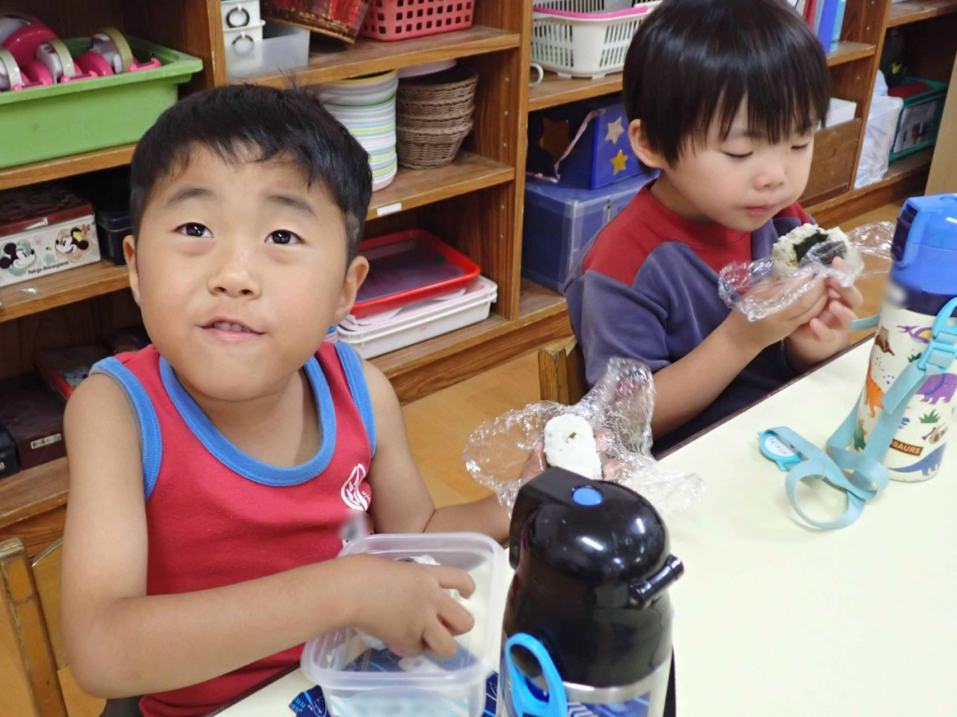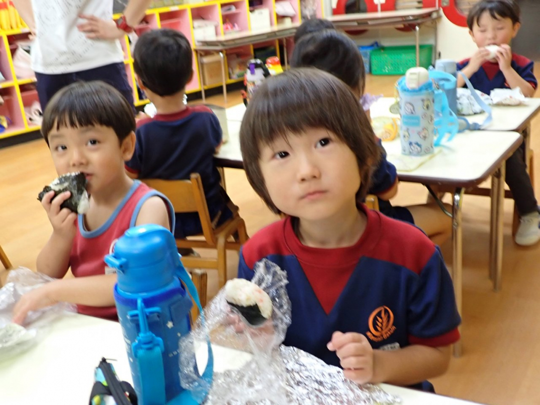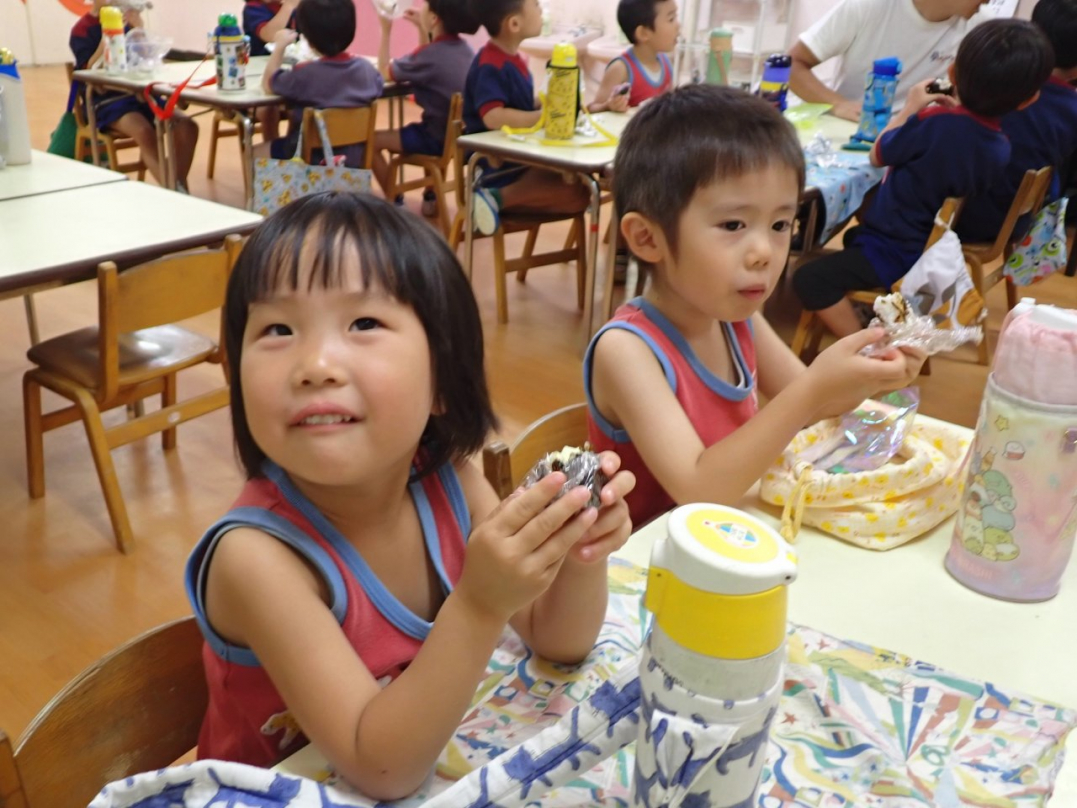 暑さが落ち着く夕方、幼稚園に集まって、持ってきた夕食をみんなで食べたり、いつもとは違った夜の幼稚園を探検したり、自分で布団を敷いたり…普段はなかなかできない経験です。おうちの方と離れて、幼稚園に泊まるのも子ども達にとって貴重な経験になると思います。