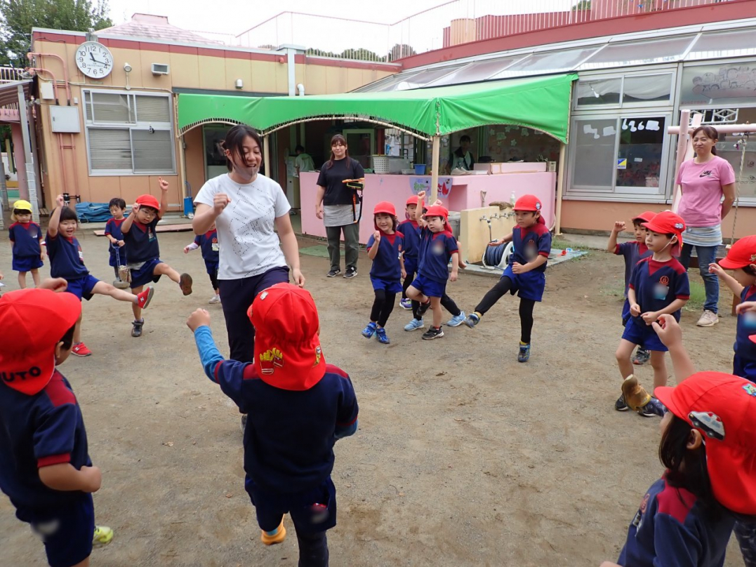 「ココロのちず」の曲に合わせて、外での練習に取り組みました。初めてにも関わらず、息もぴったりで頑張っていましたね♪
