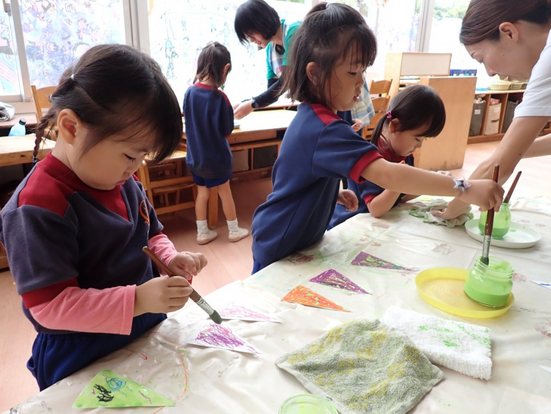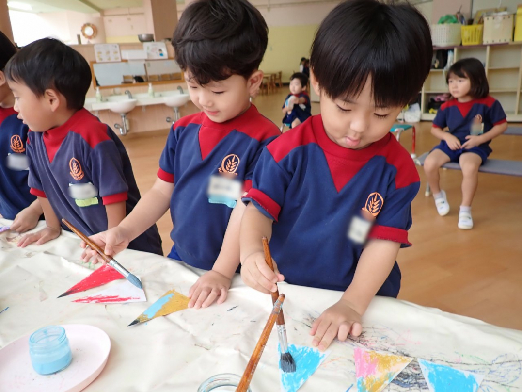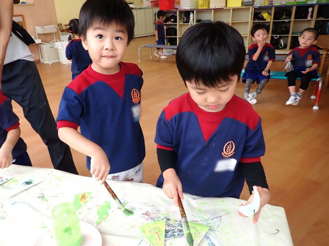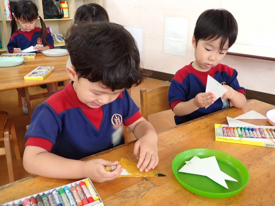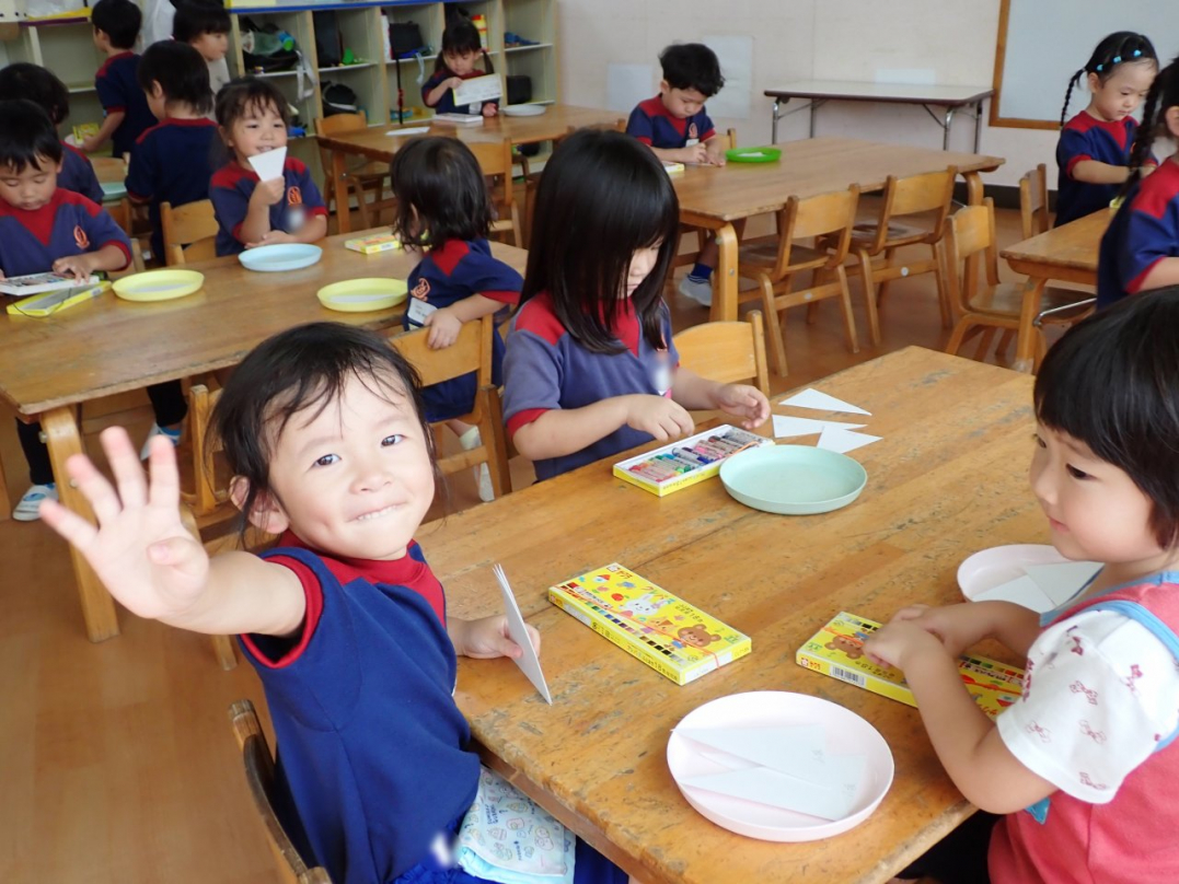 ダンスでかぶる帽子作りにもチャレンジしました。クレパスで絵を描いて、好きな色を塗って作った帽子です。子ども達も楽しんで作る様子が見られましたよ♪