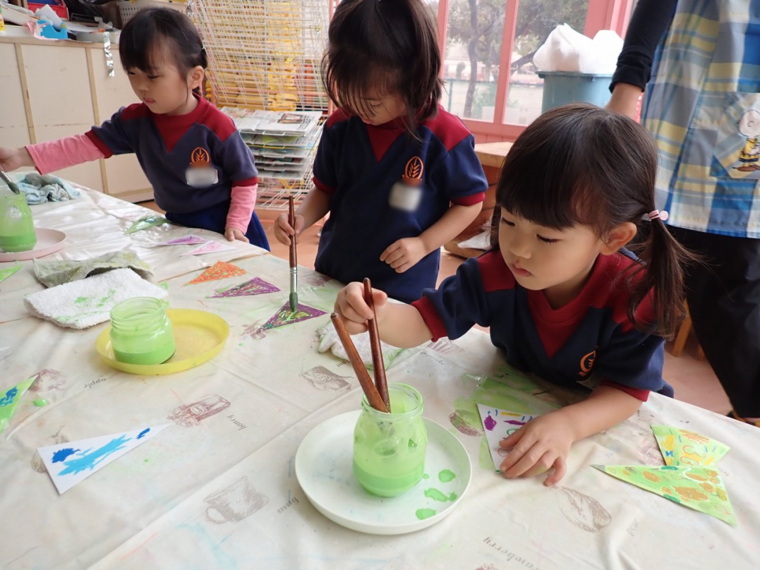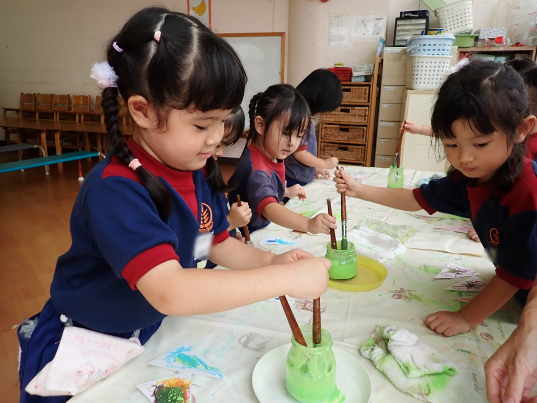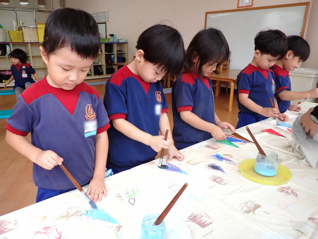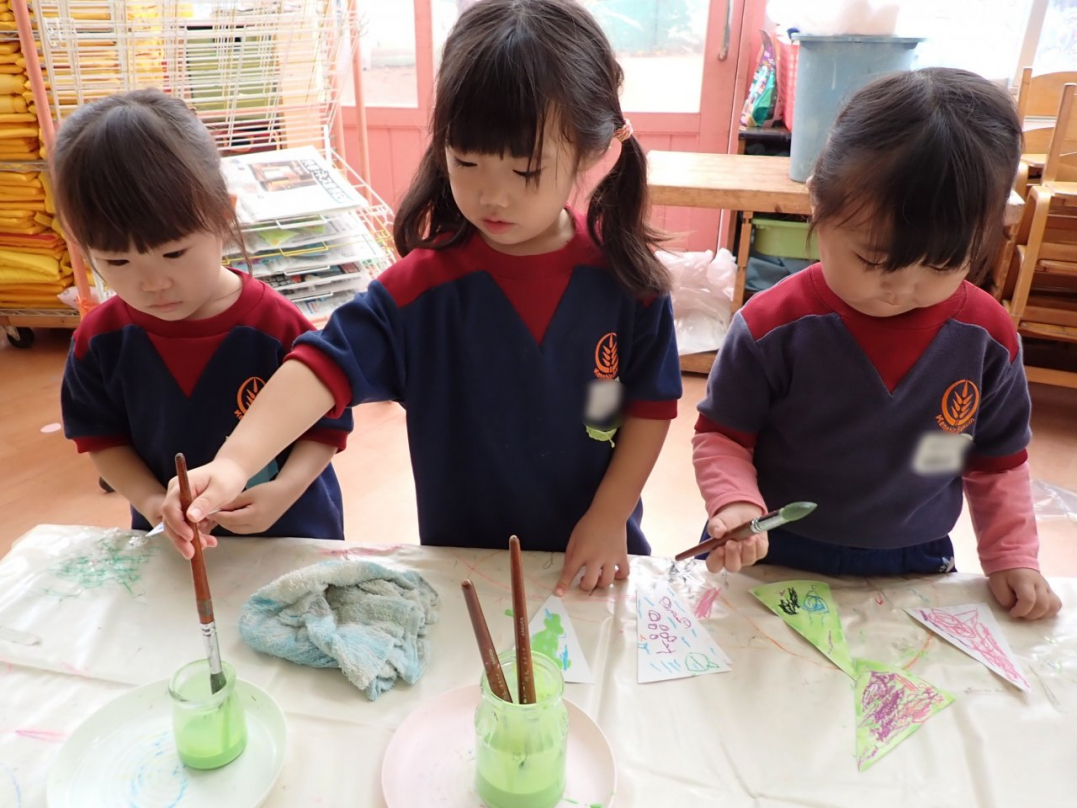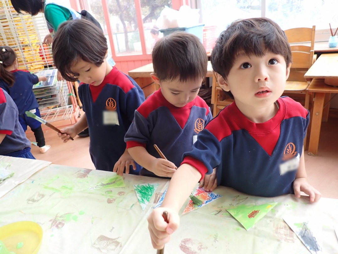 ダンスでかぶる帽子作りにもチャレンジしました。クレパスで絵を描いて、好きな色を塗って作った帽子です。子ども達も楽しんで作る様子が見られましたよ♪