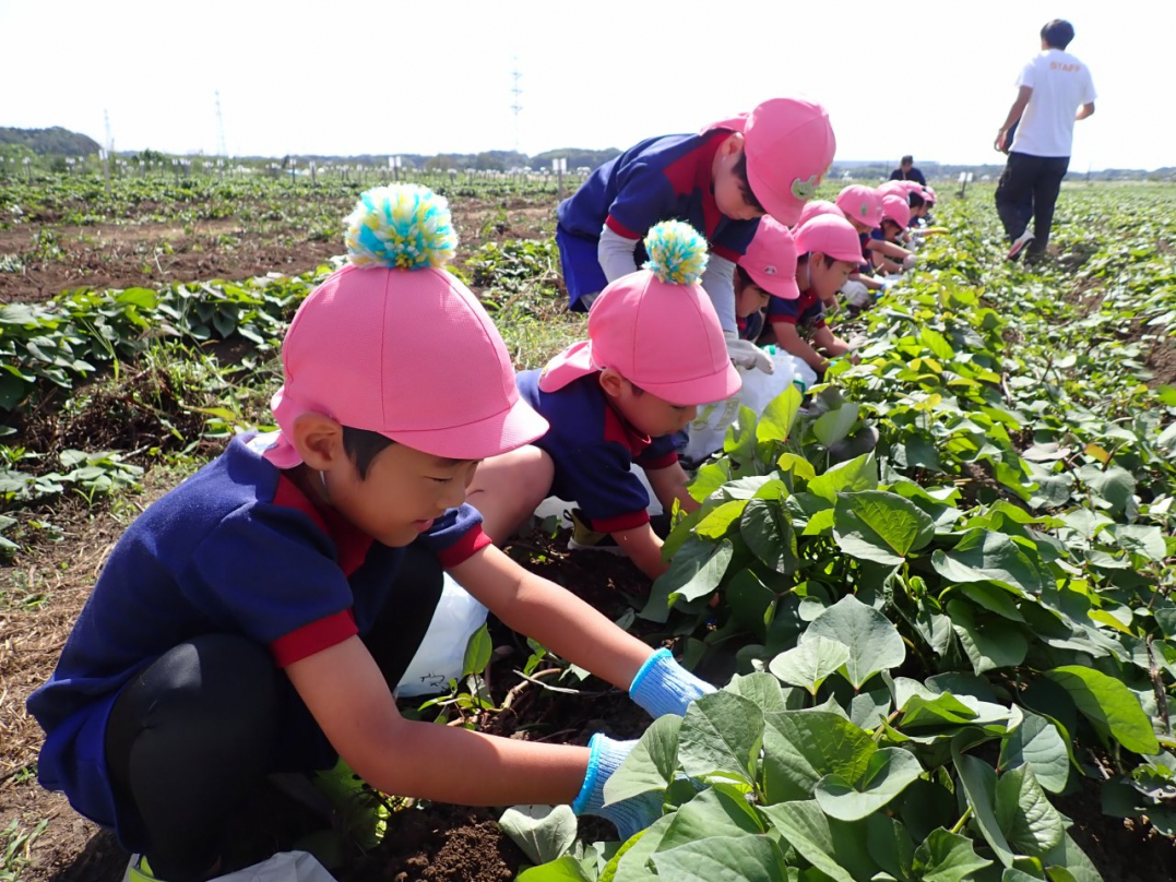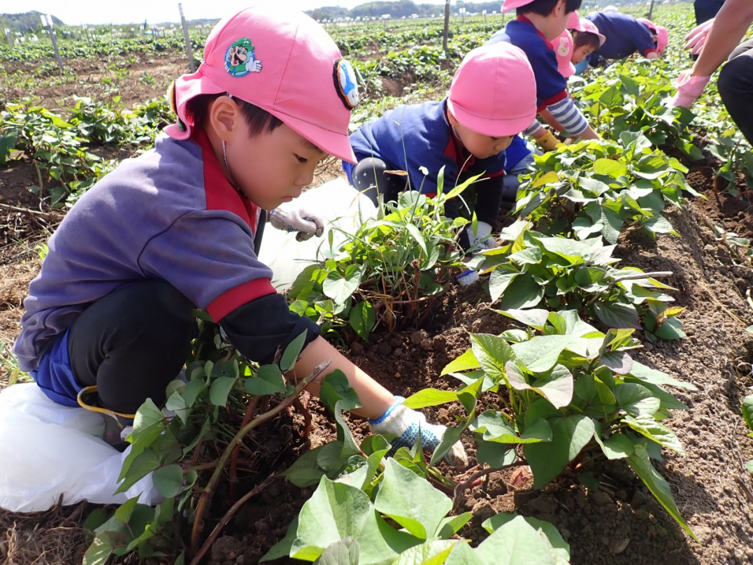 つばめ組で園バスに乗って、サツマイモを掘りに行ってきました。初めての芋掘りに、最初はなかなか苦戦している様子が見られましたが、少しずつ要領を得てきたのでしょう。