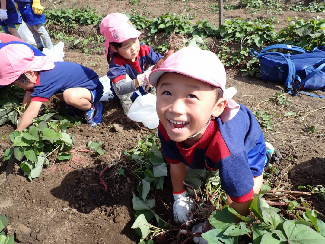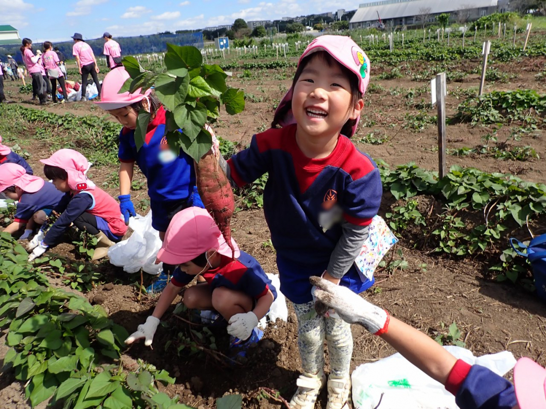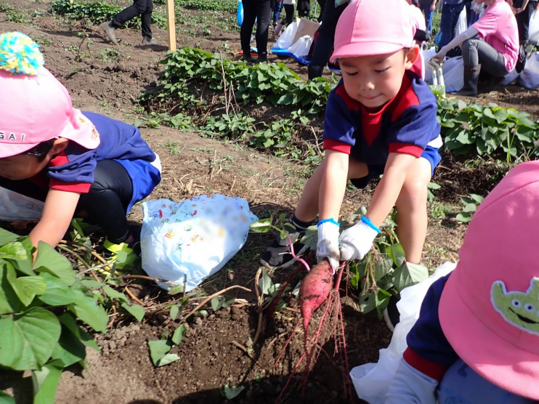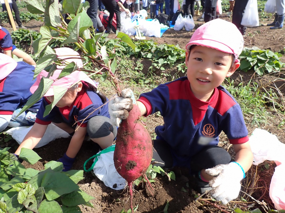「うんとこしょ!どっこいしょ!」と思いっきり引っ張って、上手に芋を収穫するようになりました。顔よりも大きいサツマイモ、美味しく食べて下さいね。