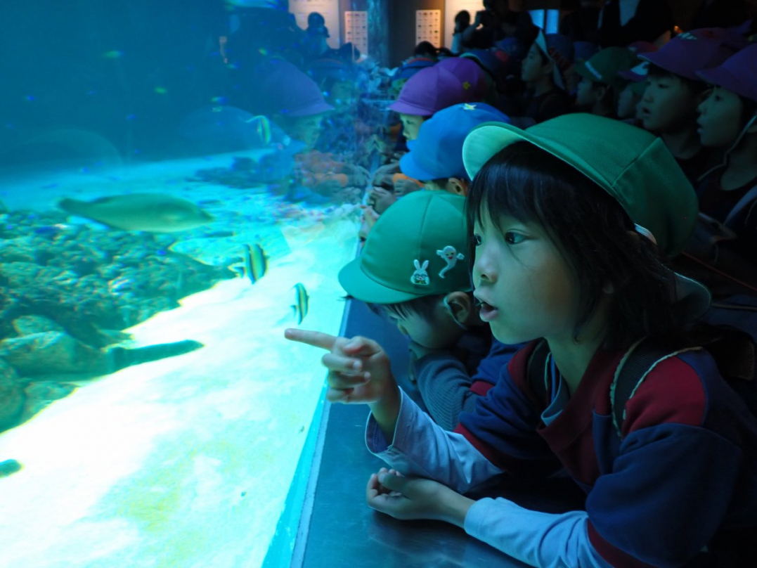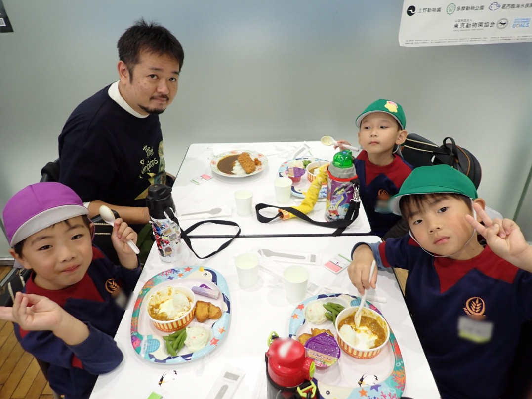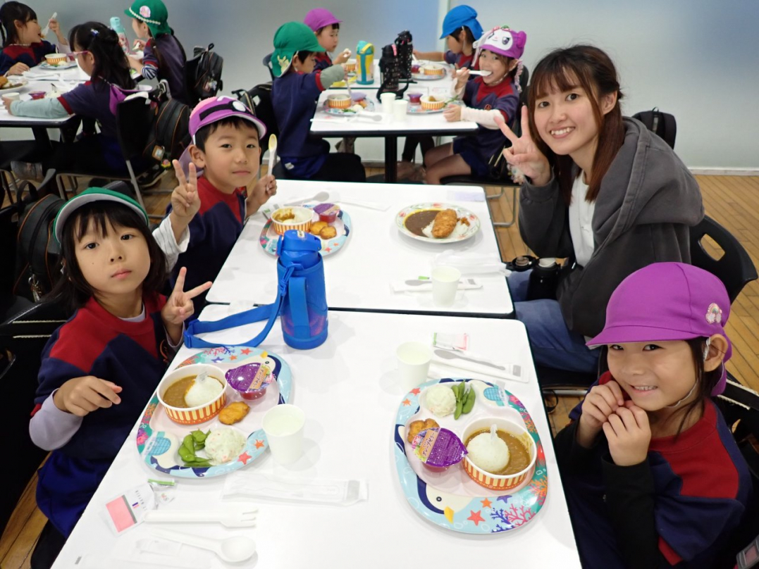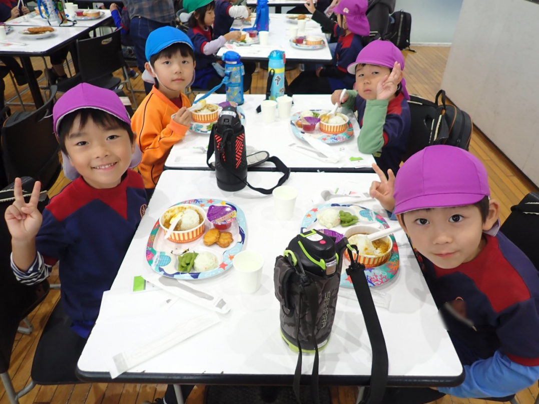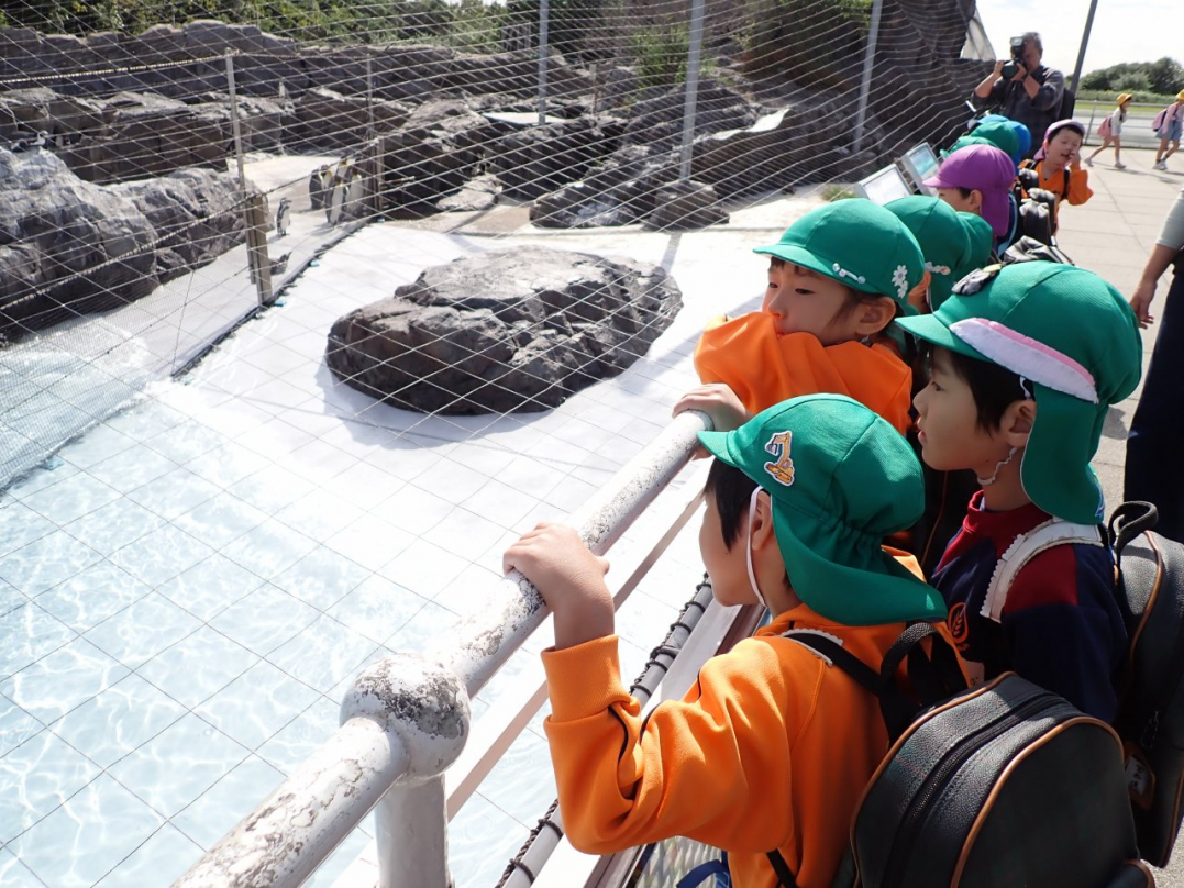 マグロやサメ、クラゲやペンギン等、たくさんの魚が元気に泳いでいる姿を見て、子ども達は大喜び!友達と「きれいだね」「かわいいね」と会話も盛り上がっていました。いっぱい見学してお腹もペコペコ。お昼ごはんで食べたカレーも「美味しい!」と大満足だったようです。