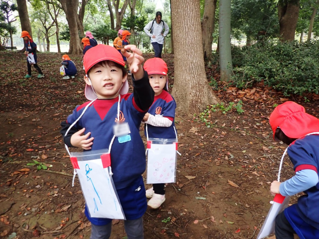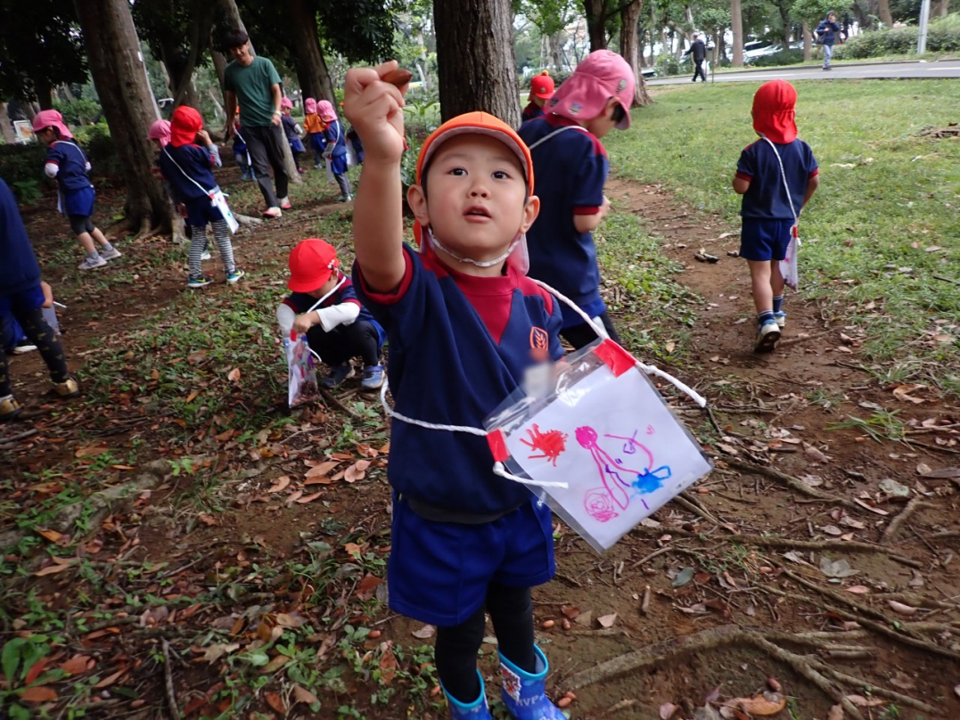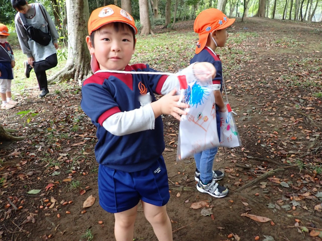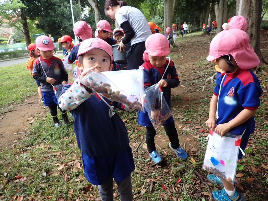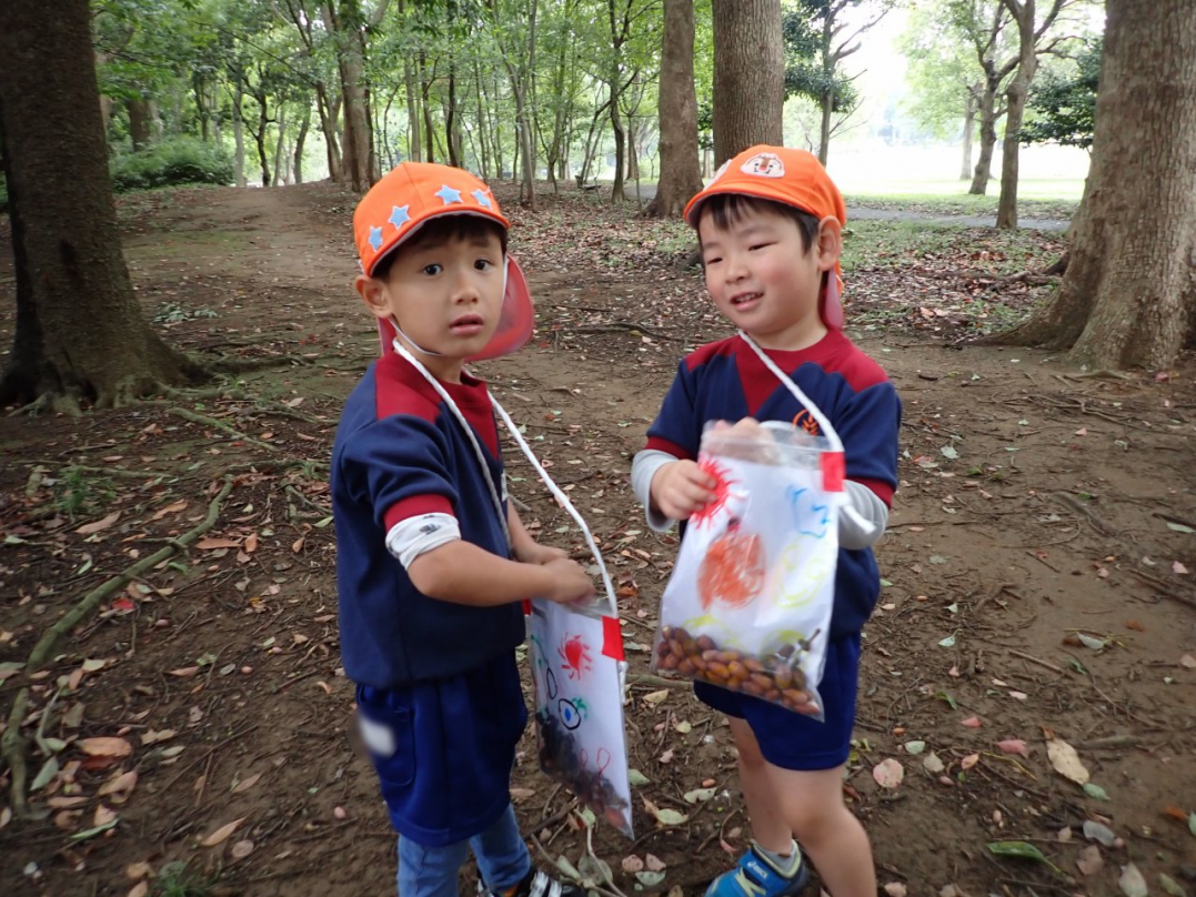 秋の自然遊びでドングリ集めに行きました(年中組)