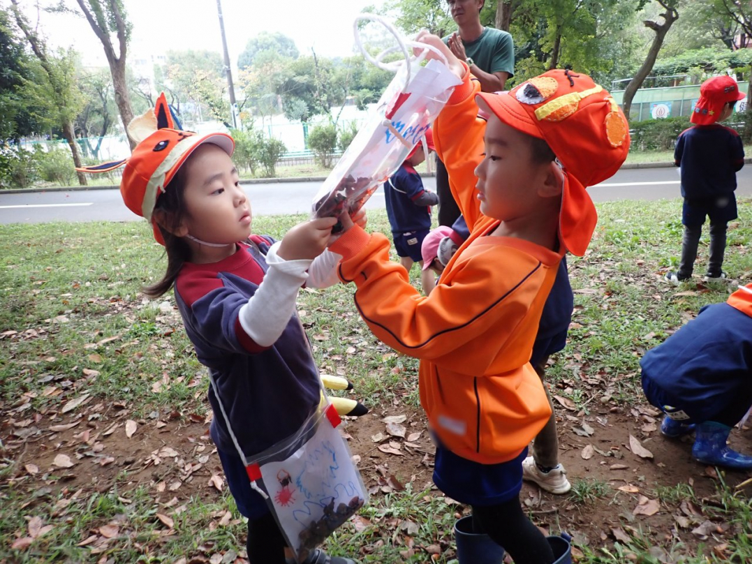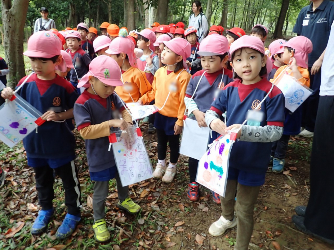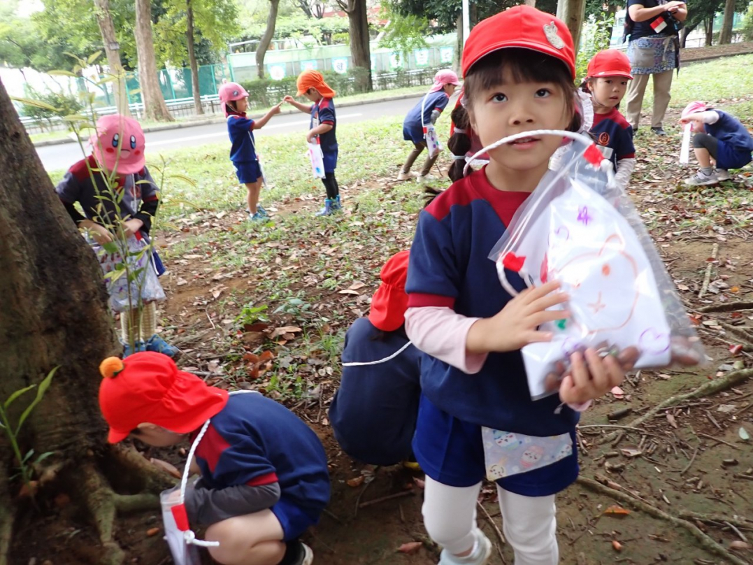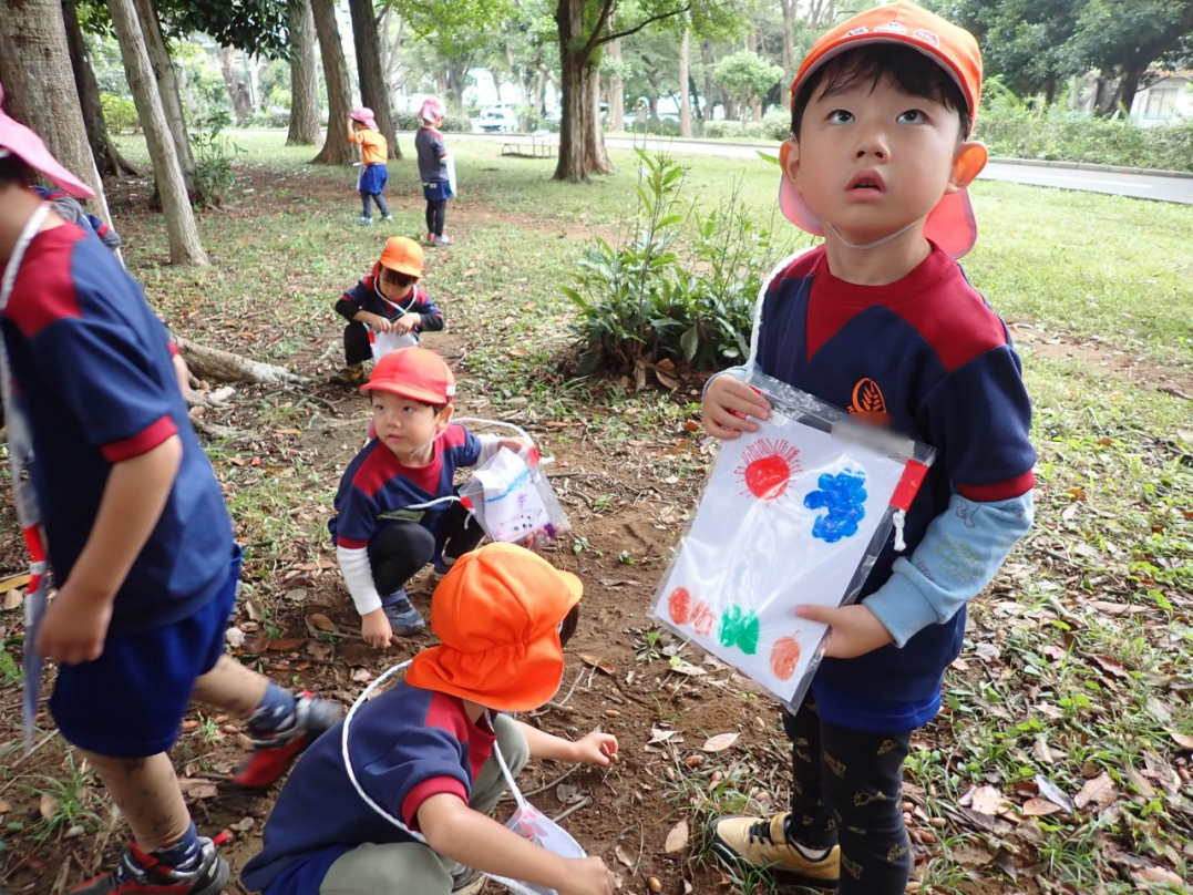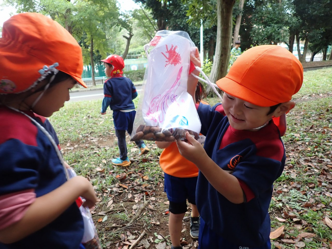 秋の自然遊びでドングリ集めに行きました(年中組)