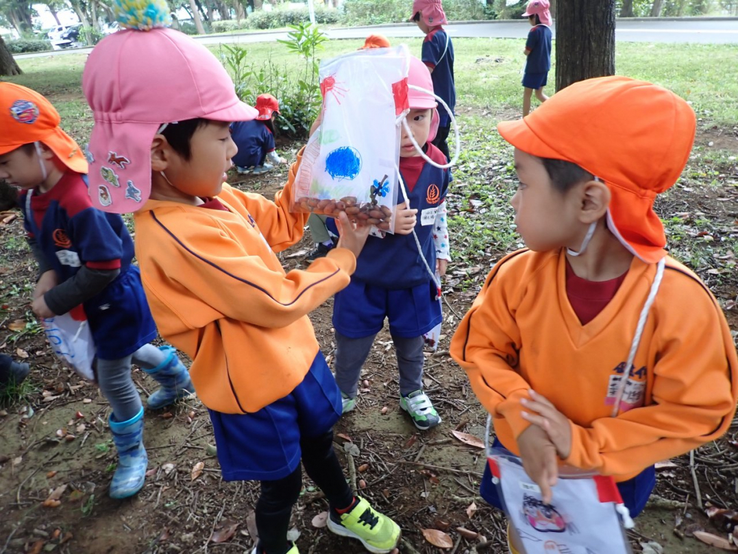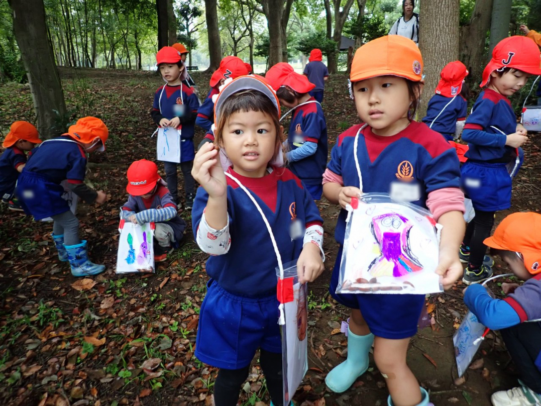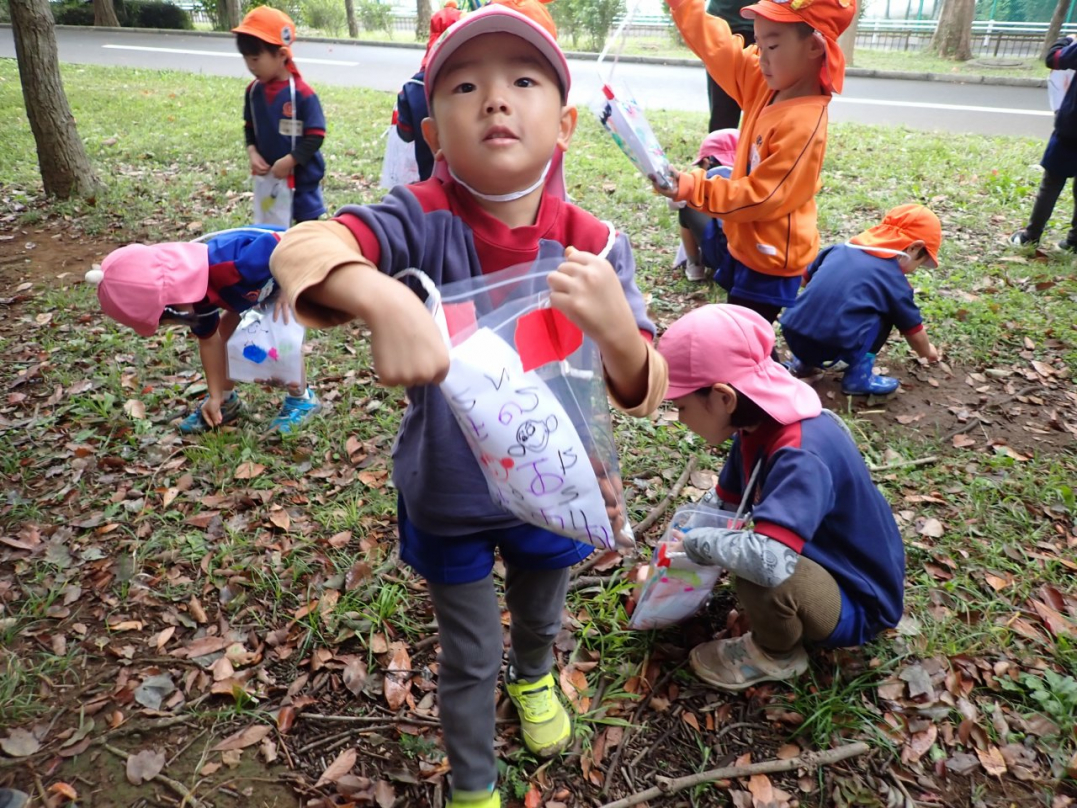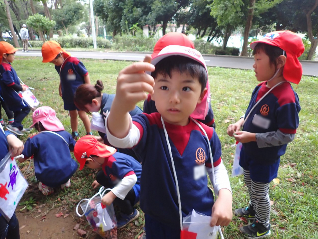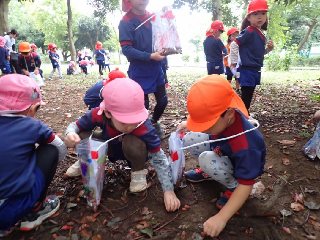 秋の自然遊びでドングリ集めに行きました(年中組)