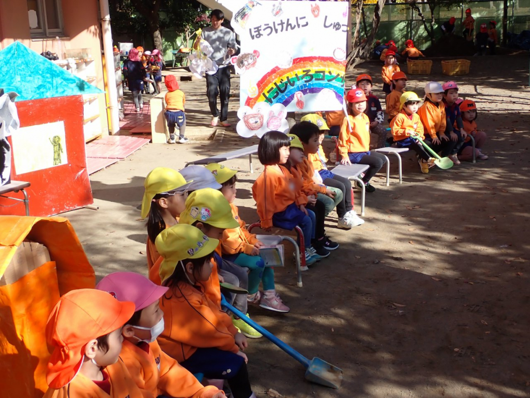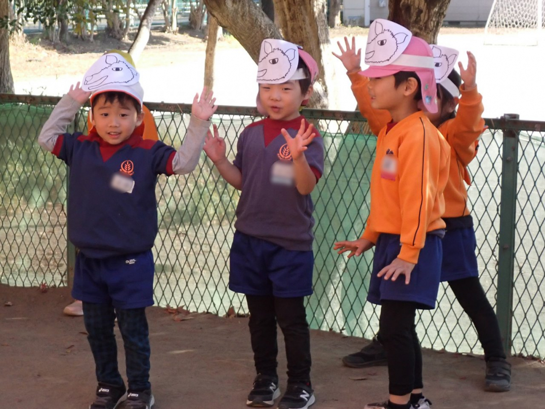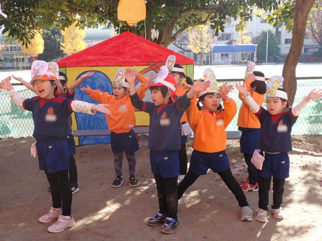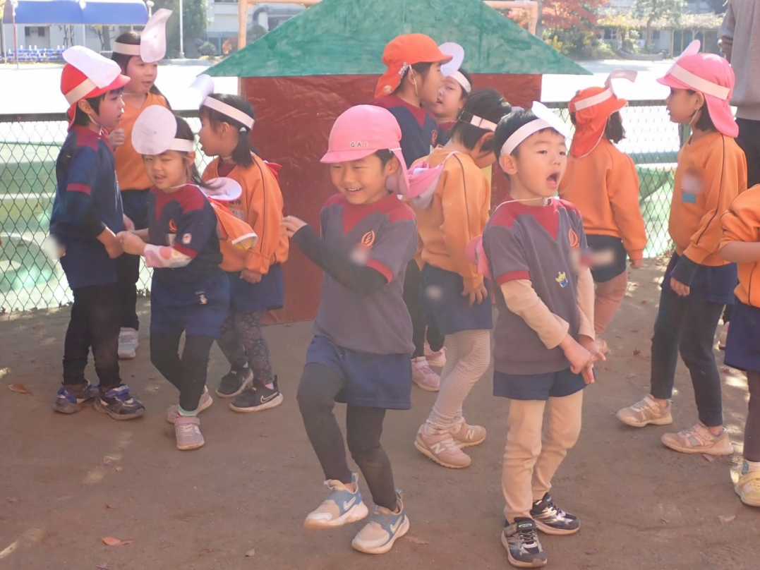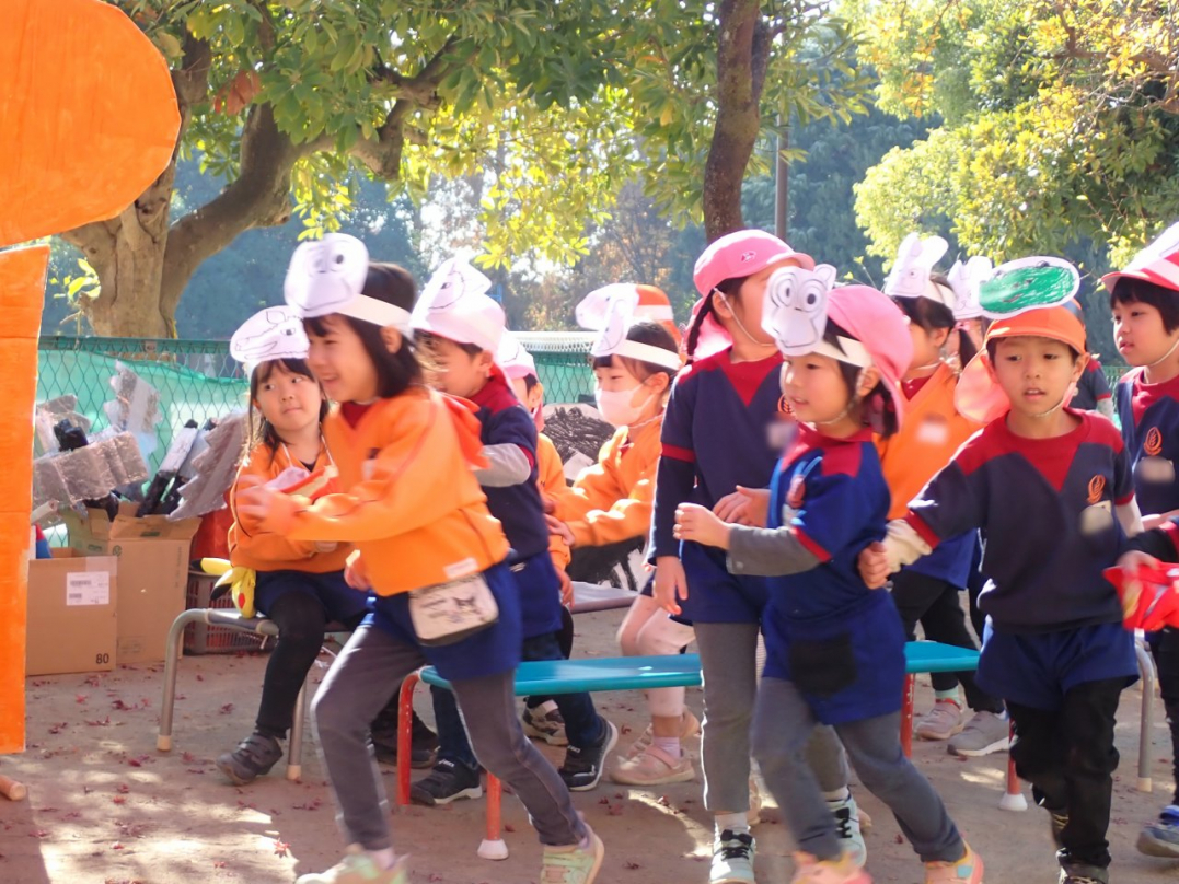表現が終わった後、子ども達は好きな劇・やりたい役を選んで、劇ゴッコを楽しんでいました。自分のクラス以外の劇は、きっと新鮮だったのでしょうね。カナリヤ組やひばり組のお客さんを前に、みんな楽しんでいましたよ♪