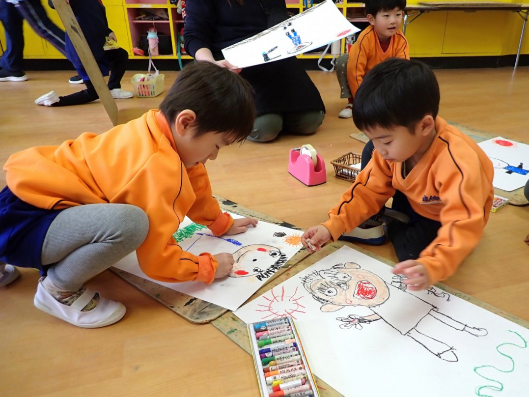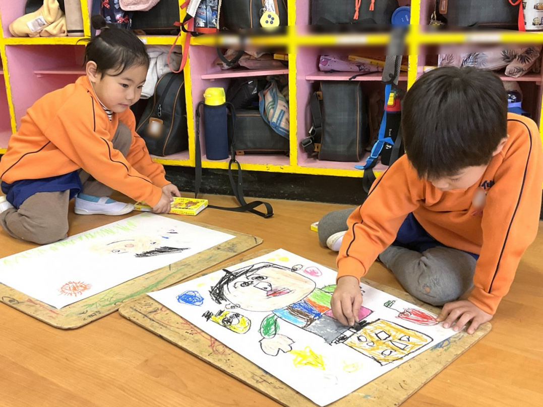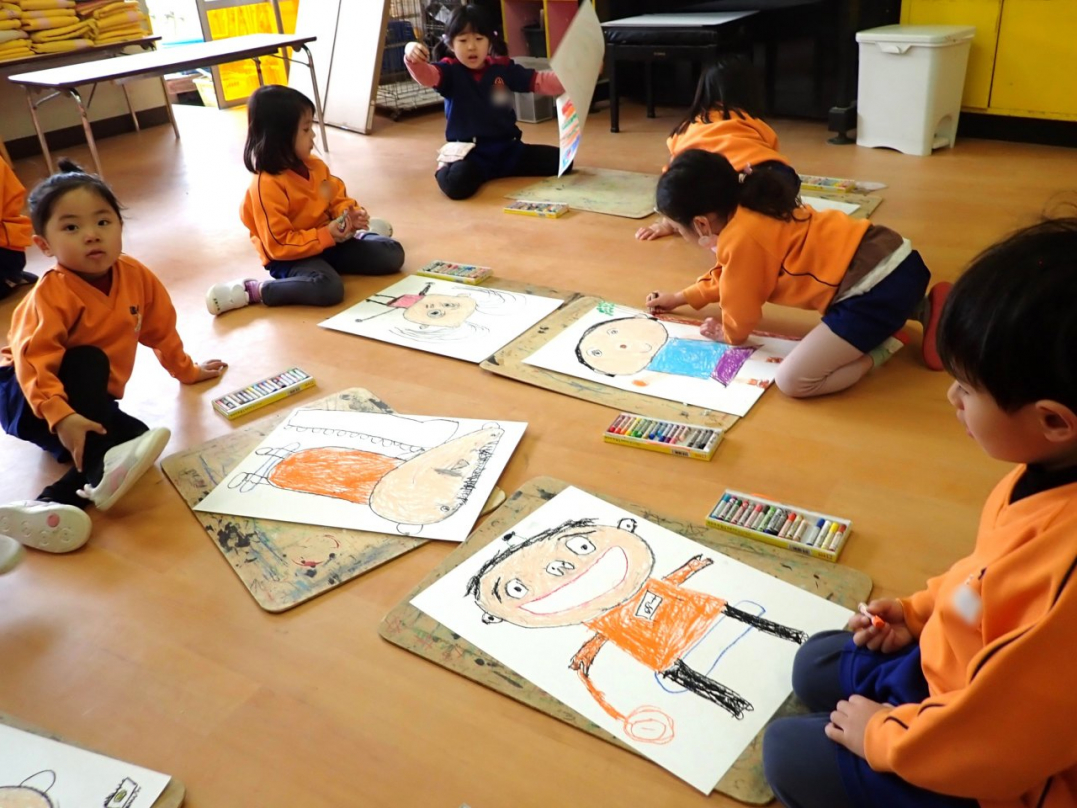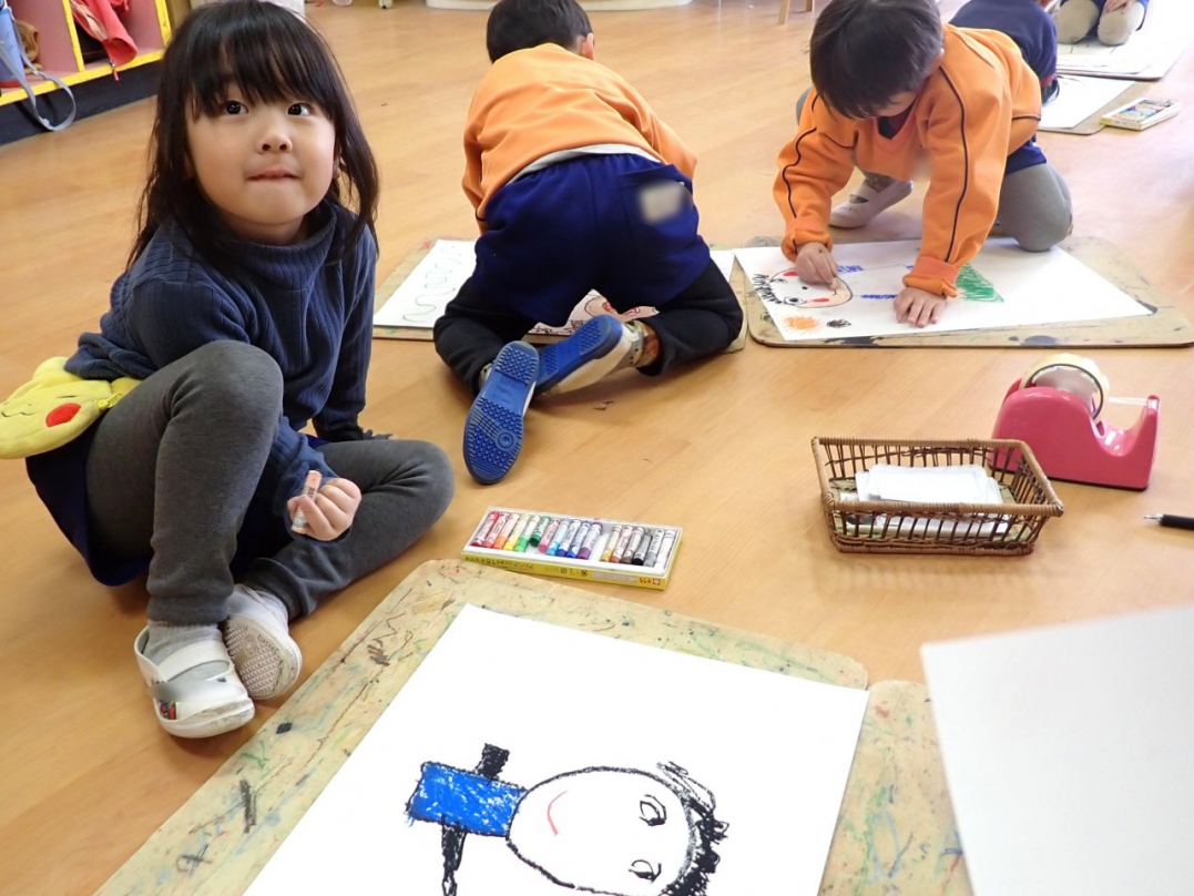 幼稚園では子ども達の表現を大切に、絵を描く時には「楽しい絵を描こうね」と話しています。