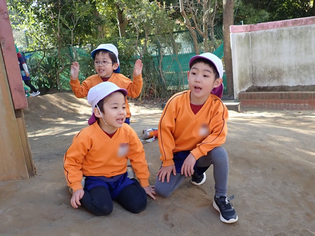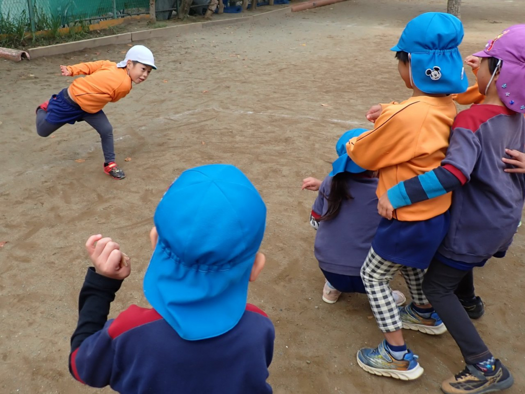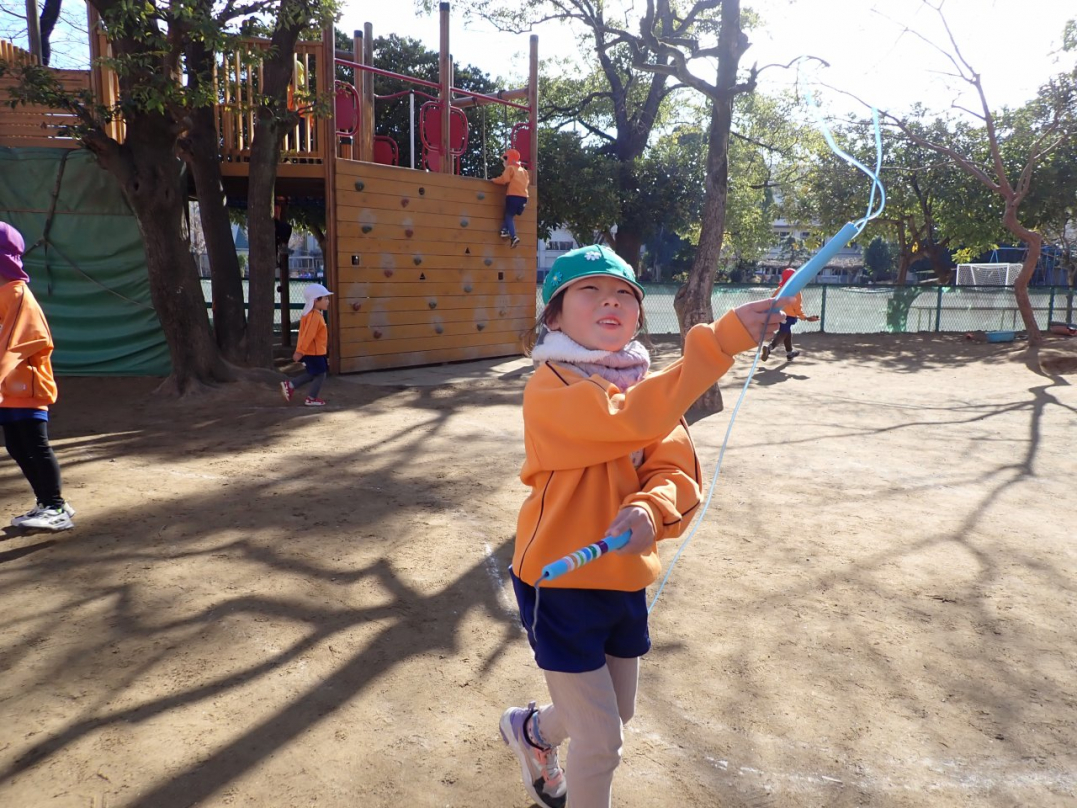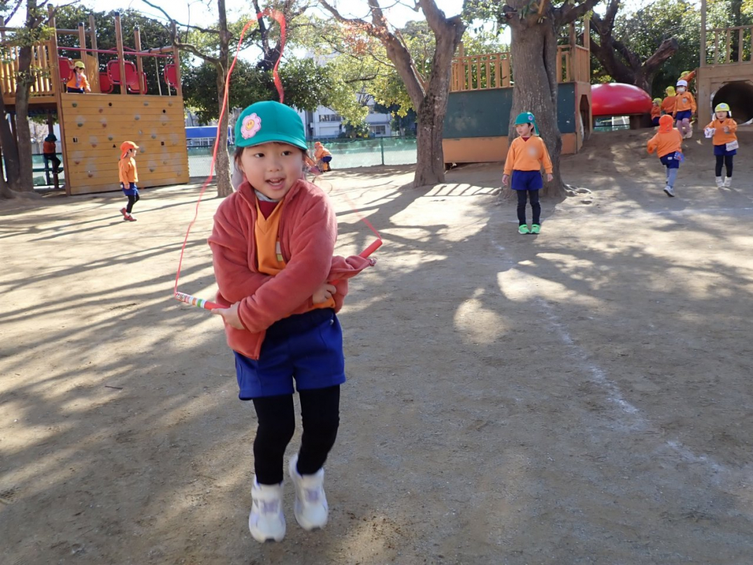 冬本番を迎え、すっかり寒くなってきましたね。子ども達は寒さに負けず、園庭でも部屋の中でも元気いっぱいに遊んでいます。ドッヂボール、鬼ゴッコ、なわとび…2学期から1月にかけて、子ども達がそれぞれ好きな遊びを楽しんでいる様子をご紹介しますね。