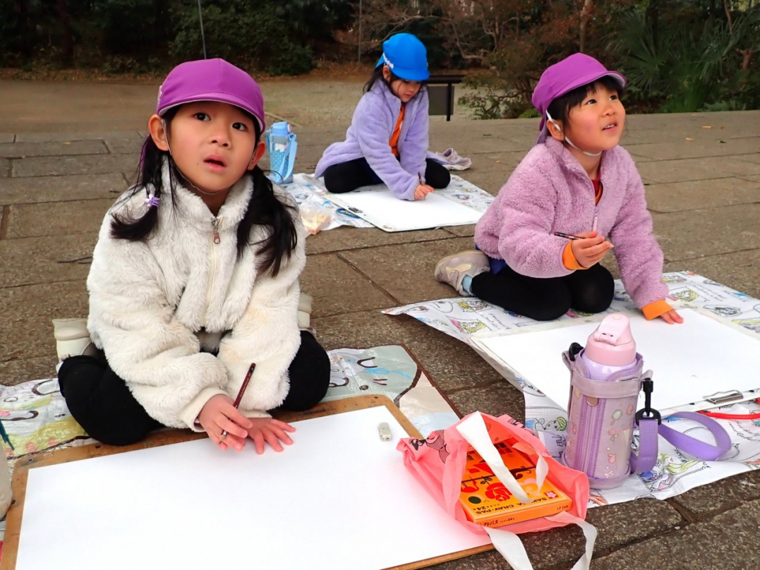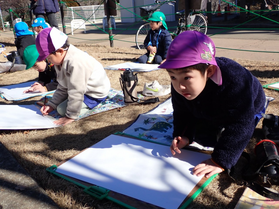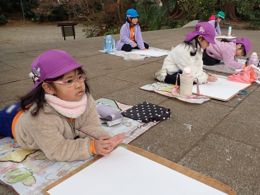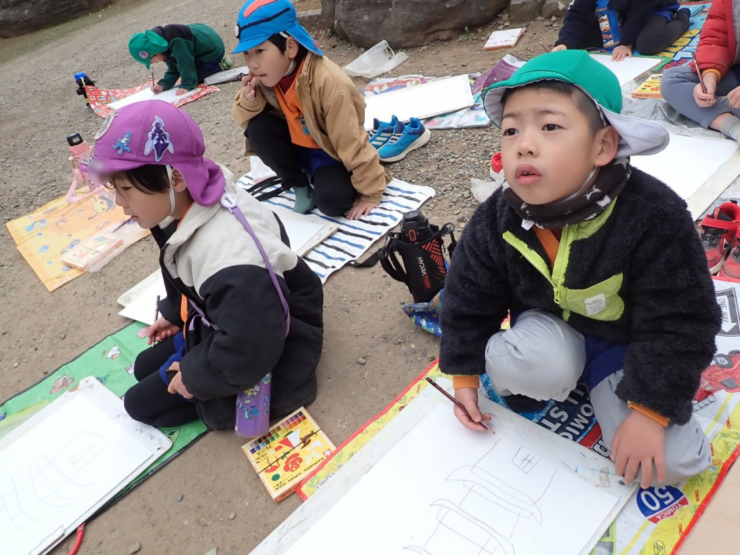 園バスで出掛けて描いてきました(年長組)-1-