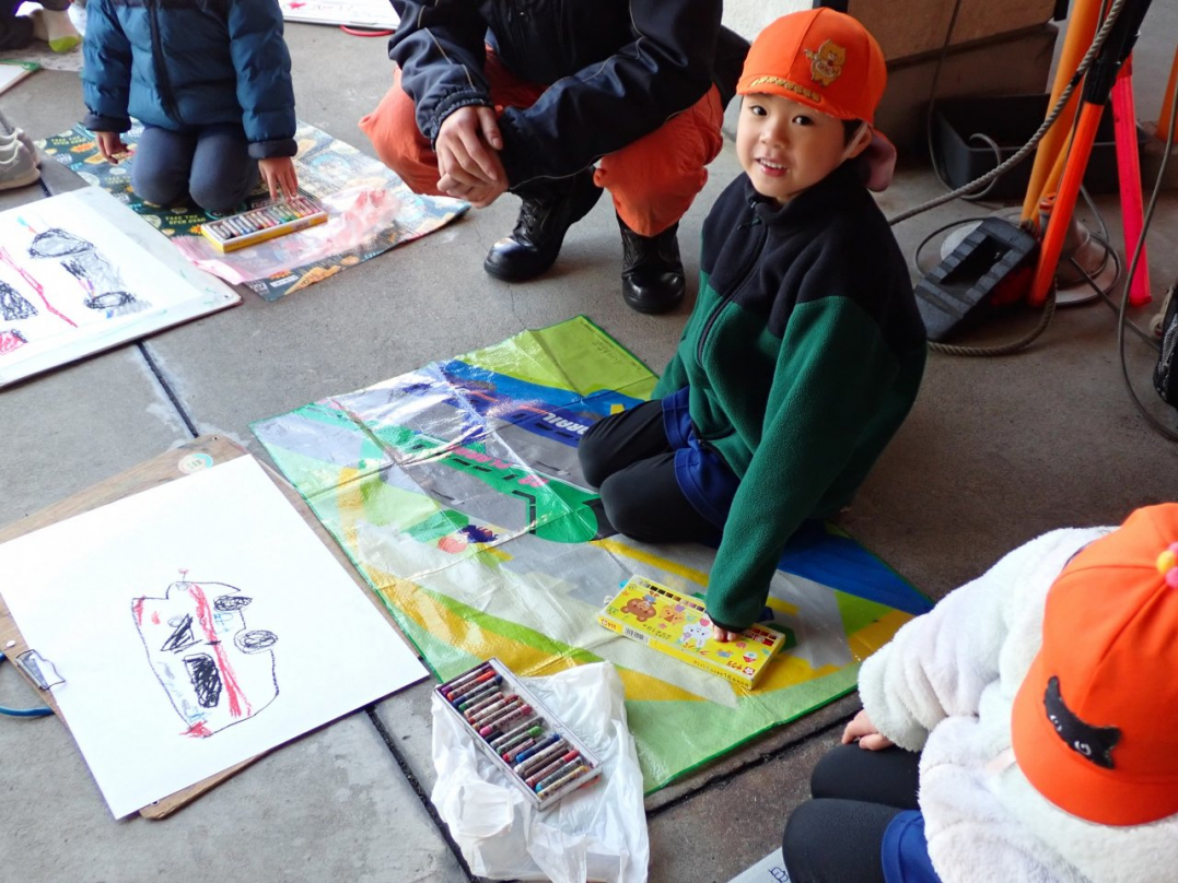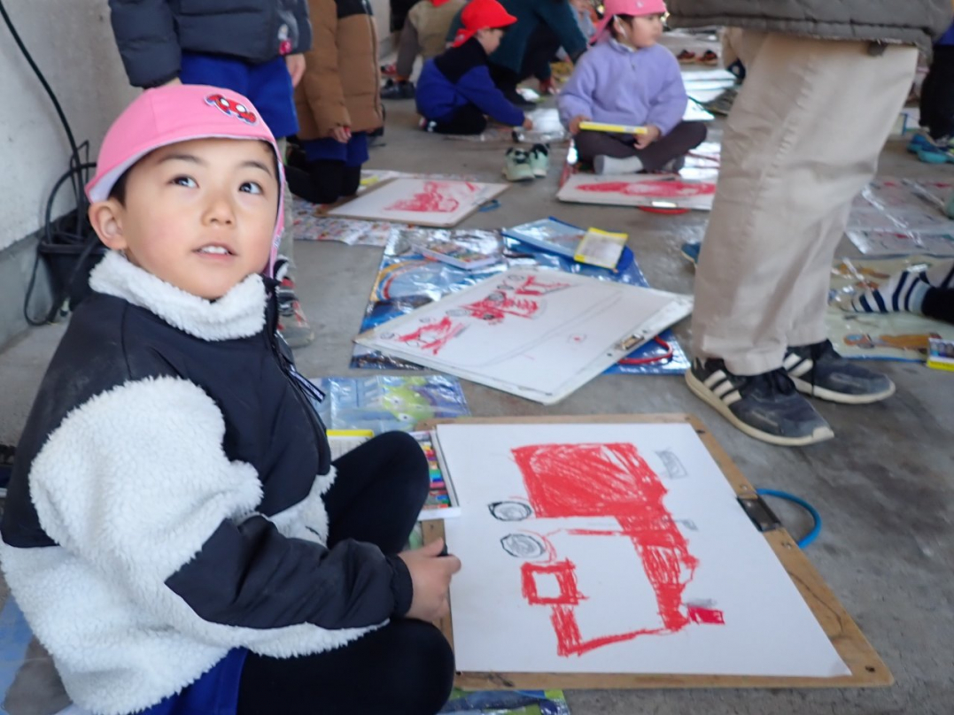 大きな消防車を目の前に描いた子ども達の絵には、火事の現場に急行したり、水をまいたりする様子が描かれ、とっても迫力満点でした!