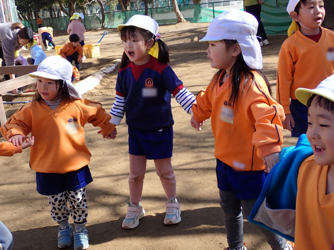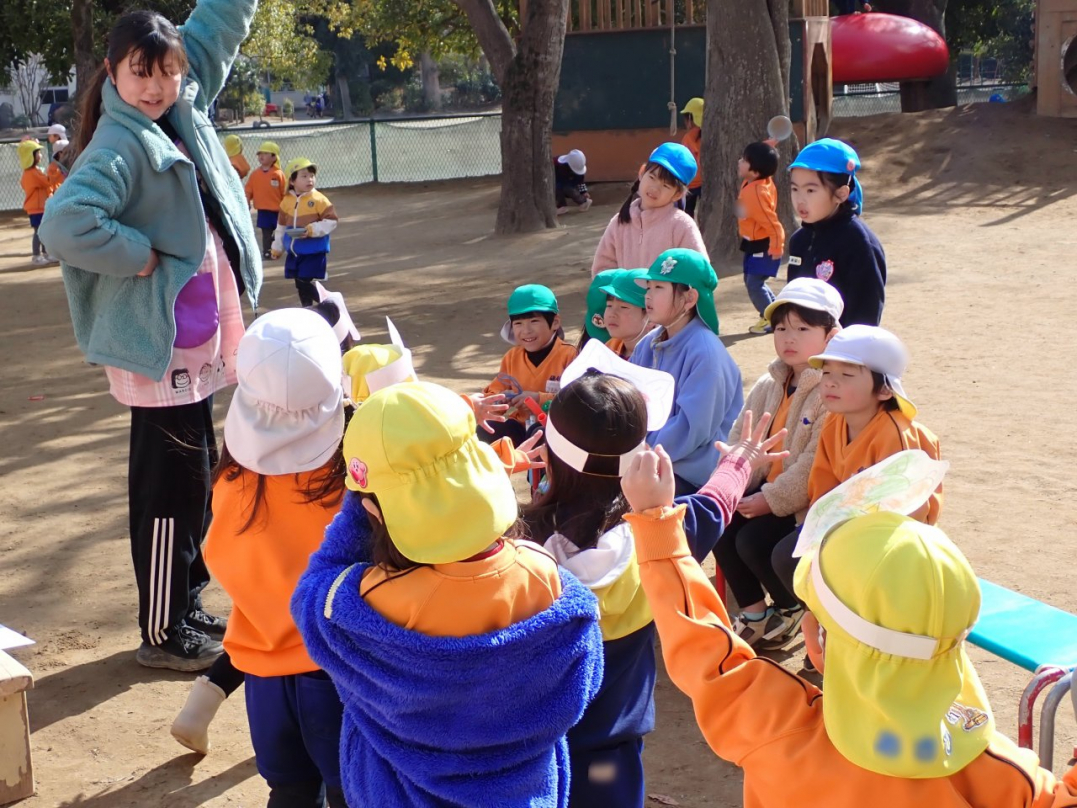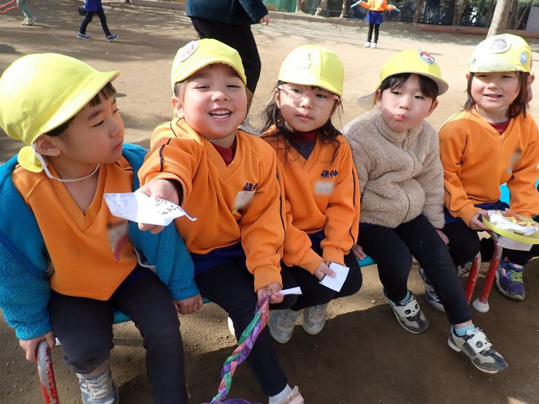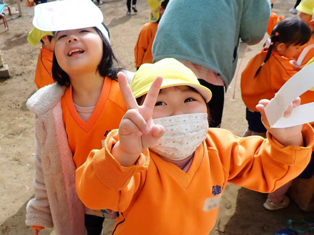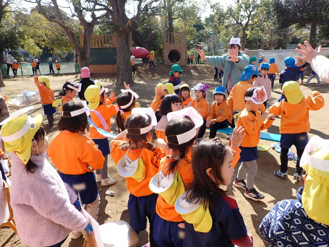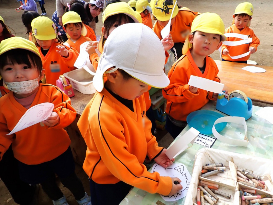 絵本に登場する「おおかみ」や「こぶた」の中から、好きな役を選んでお面を作ったら、さっそく音楽に合わせて演じます。コワいおおかみや、かわいいこぶたをイメージしながら、子ども達はそれぞれの役になりきって楽しんでいましたよ。