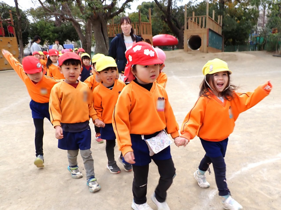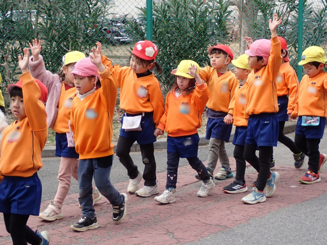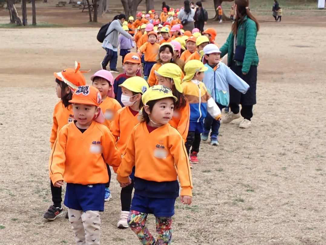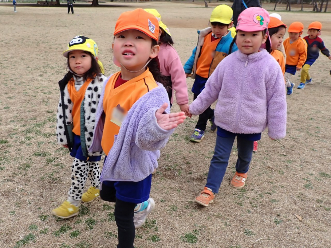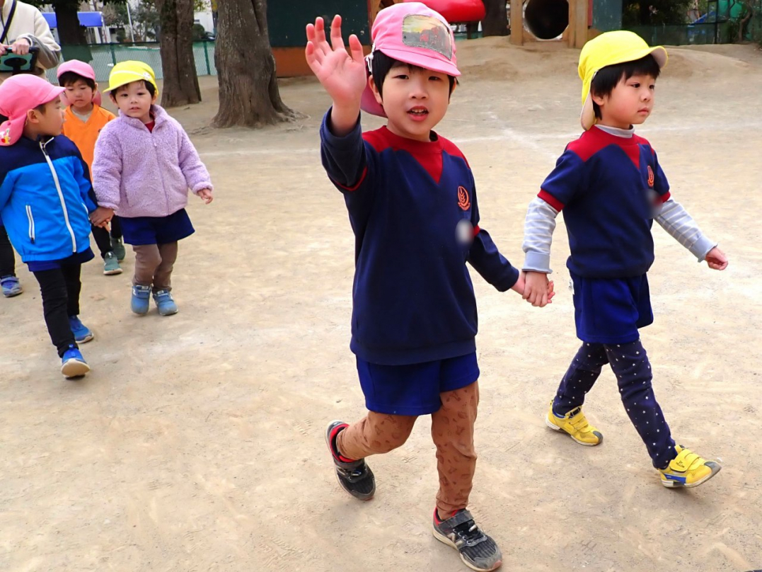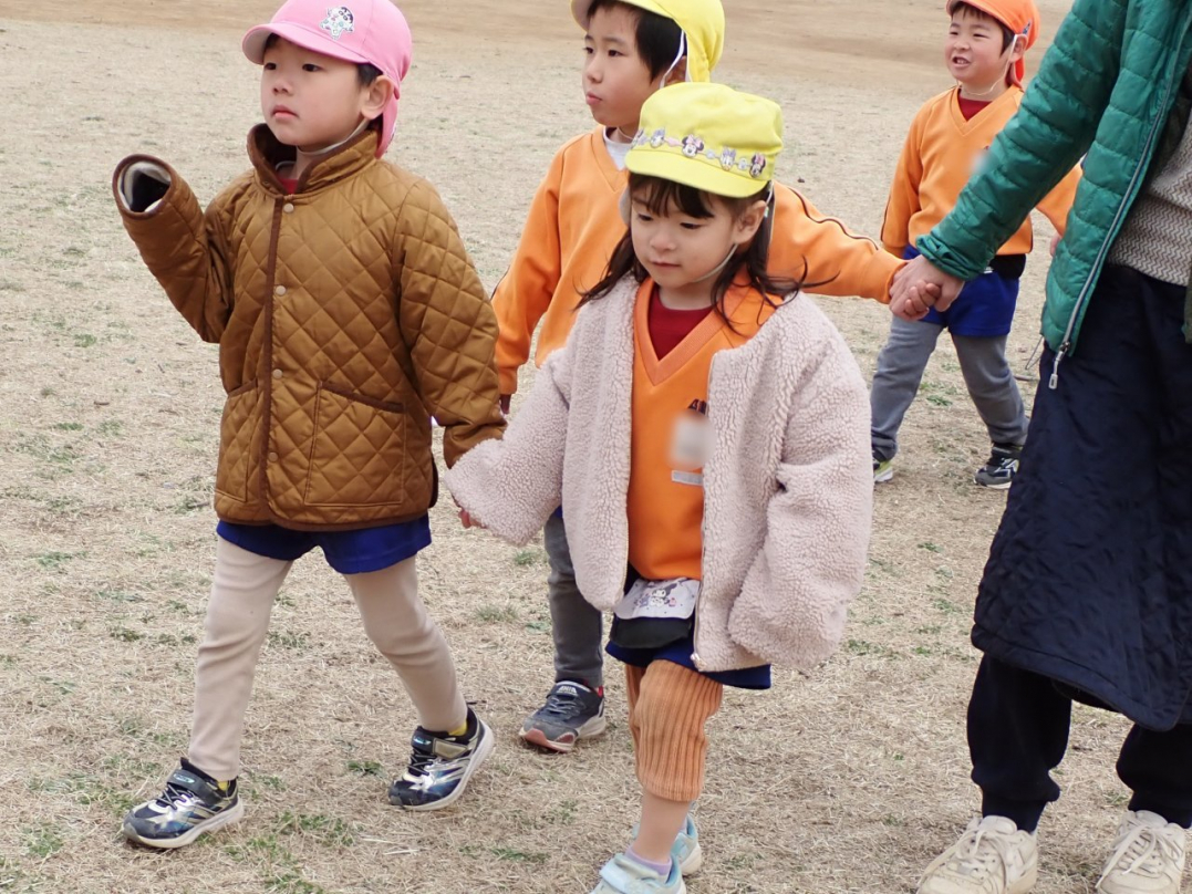 そこで、行田公園までみんな一緒に散歩に出掛けました。手をつないで優しく散歩してくれるつばめ組のお兄さん、お姉さんとの散歩はとても楽しそうで、カナリヤ組の子ども達も嬉しかった様子が伺えました。4月になったら、また行田公園に遊びに行きましょうね。