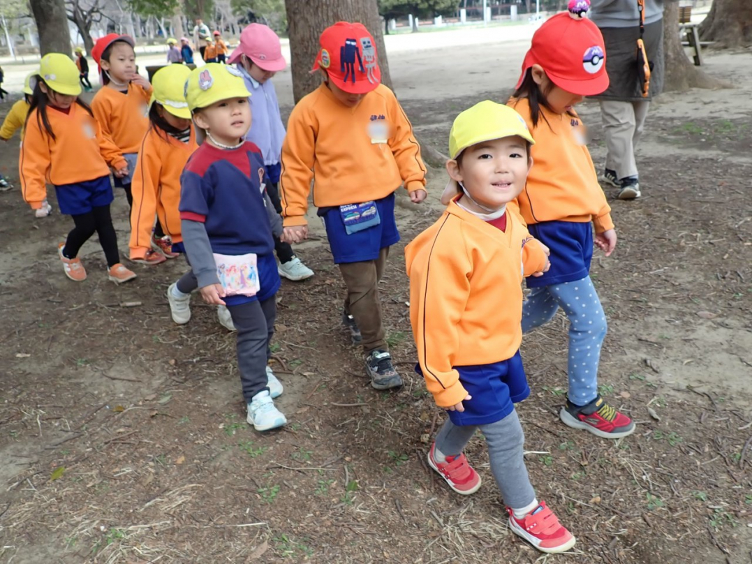 一緒に行田公園まで散歩に行きました(年中・年少組)