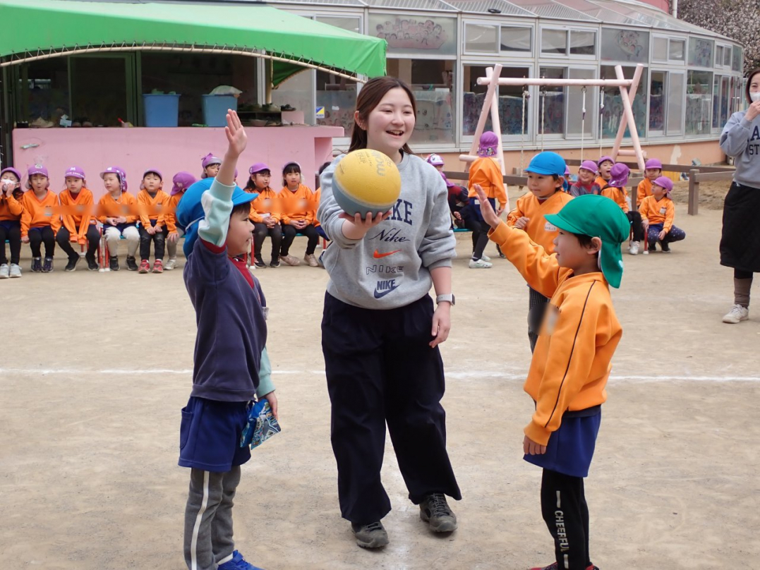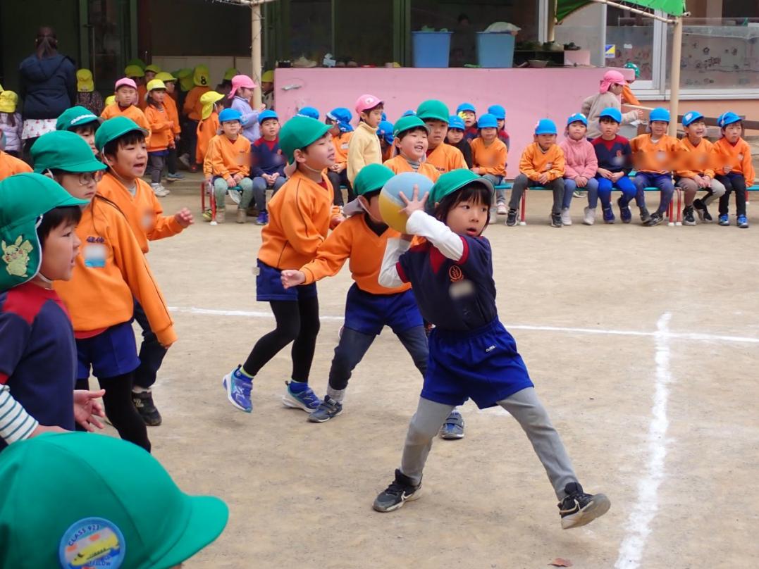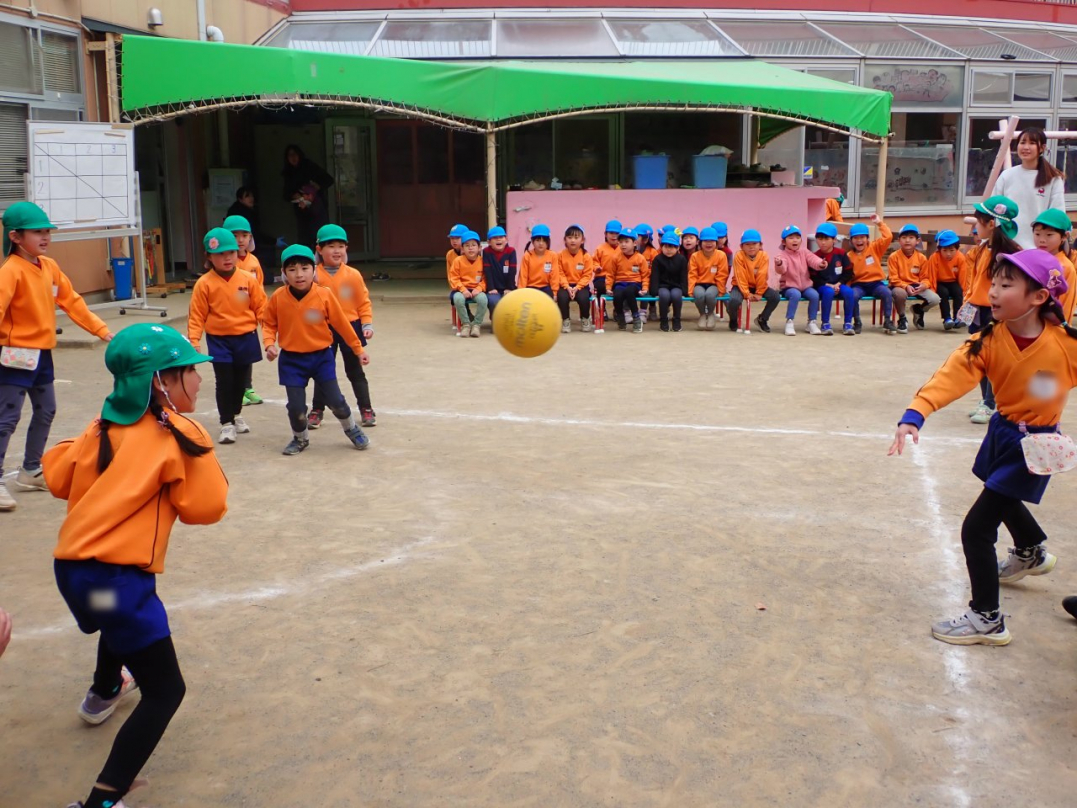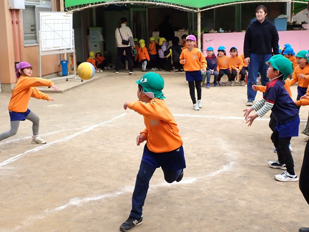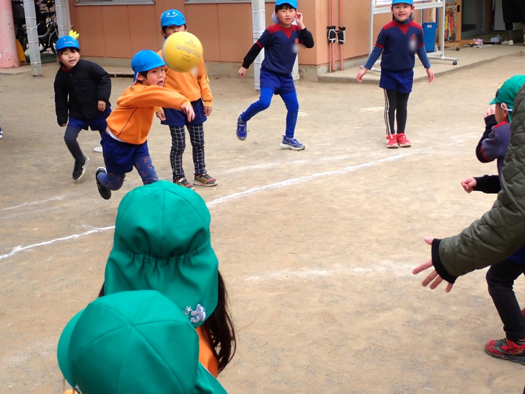 いつも友達と一緒に遊んでいるドッチボールです。ボールを投げたり、キャッチしたりするのも上手になった子ども達ですから、白熱した勝負が繰り広げられました。