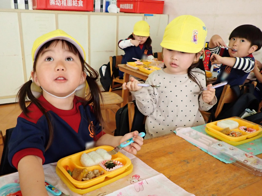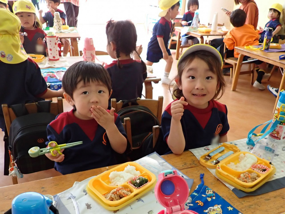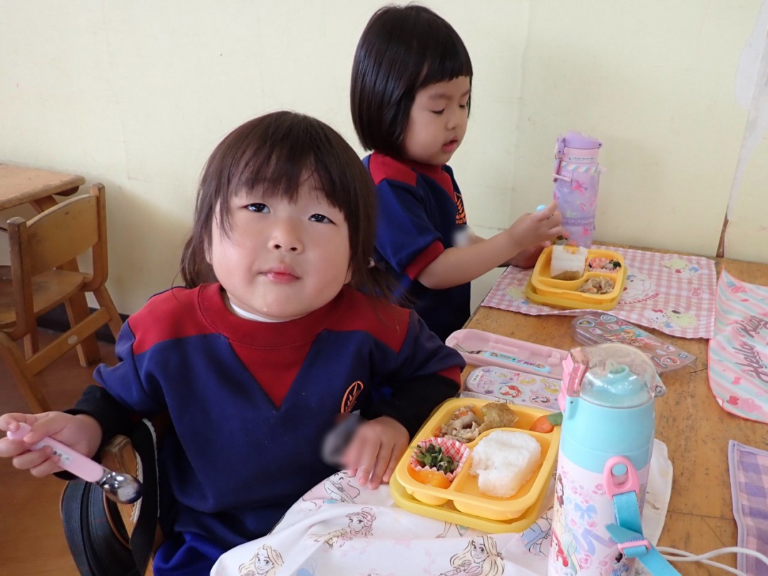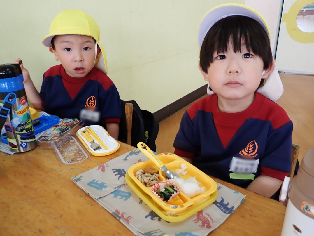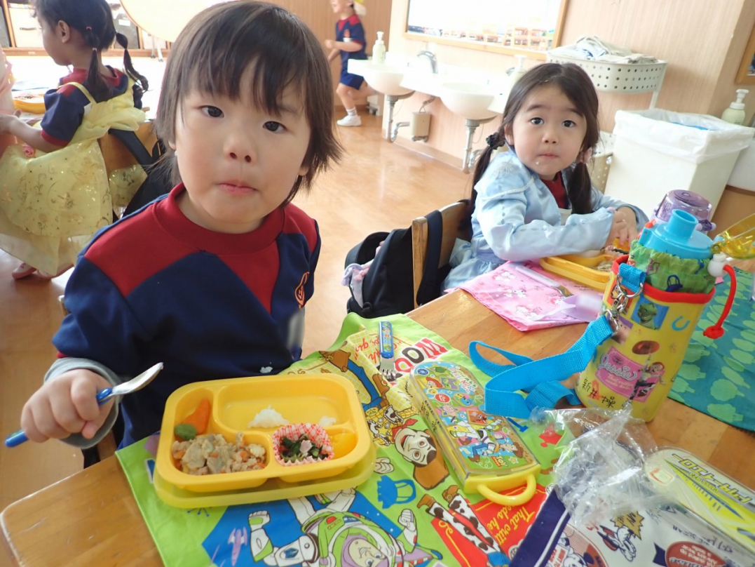 初めてのランチタイムですね(年少組)